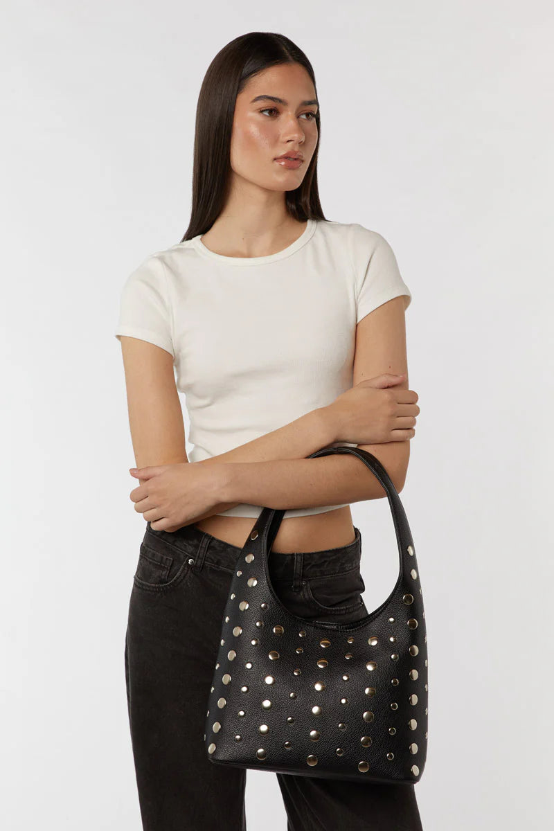 Sleek, structured and just a little bold, the Jenni Tote Bag is made for busy days on the go. Silver stud detailing brings subtle edge, while the spacious shape holds more than just the essentials. Ideal for errands, office days or whenever you need extra room with style.
