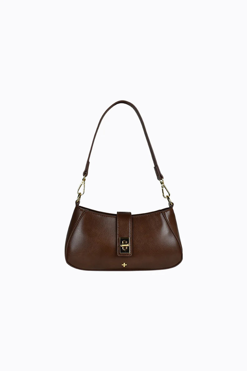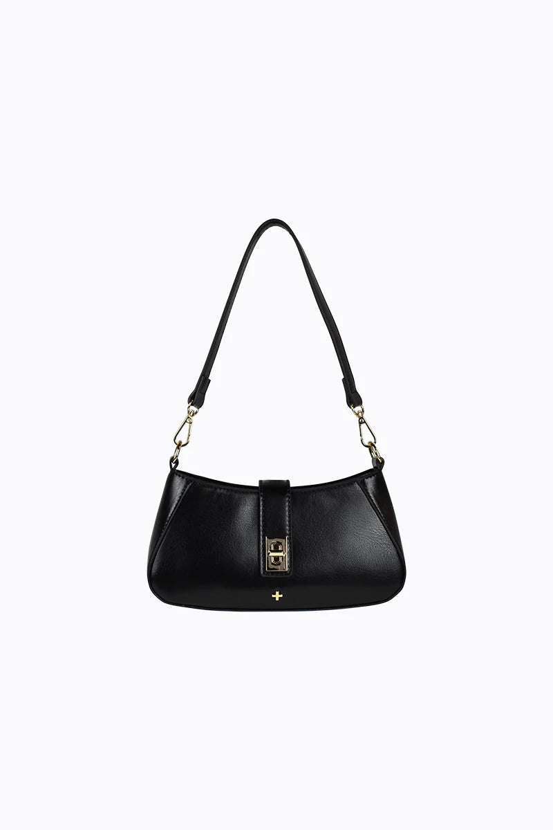 The Ripley Shoulder Bag balances structure and ease with its clean shape and gold turn-lock strap. A versatile piece that adds a quiet edge to any outfit.