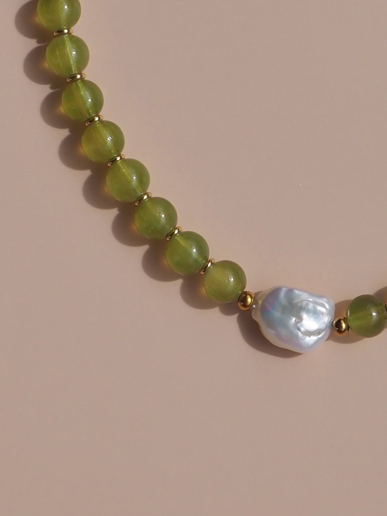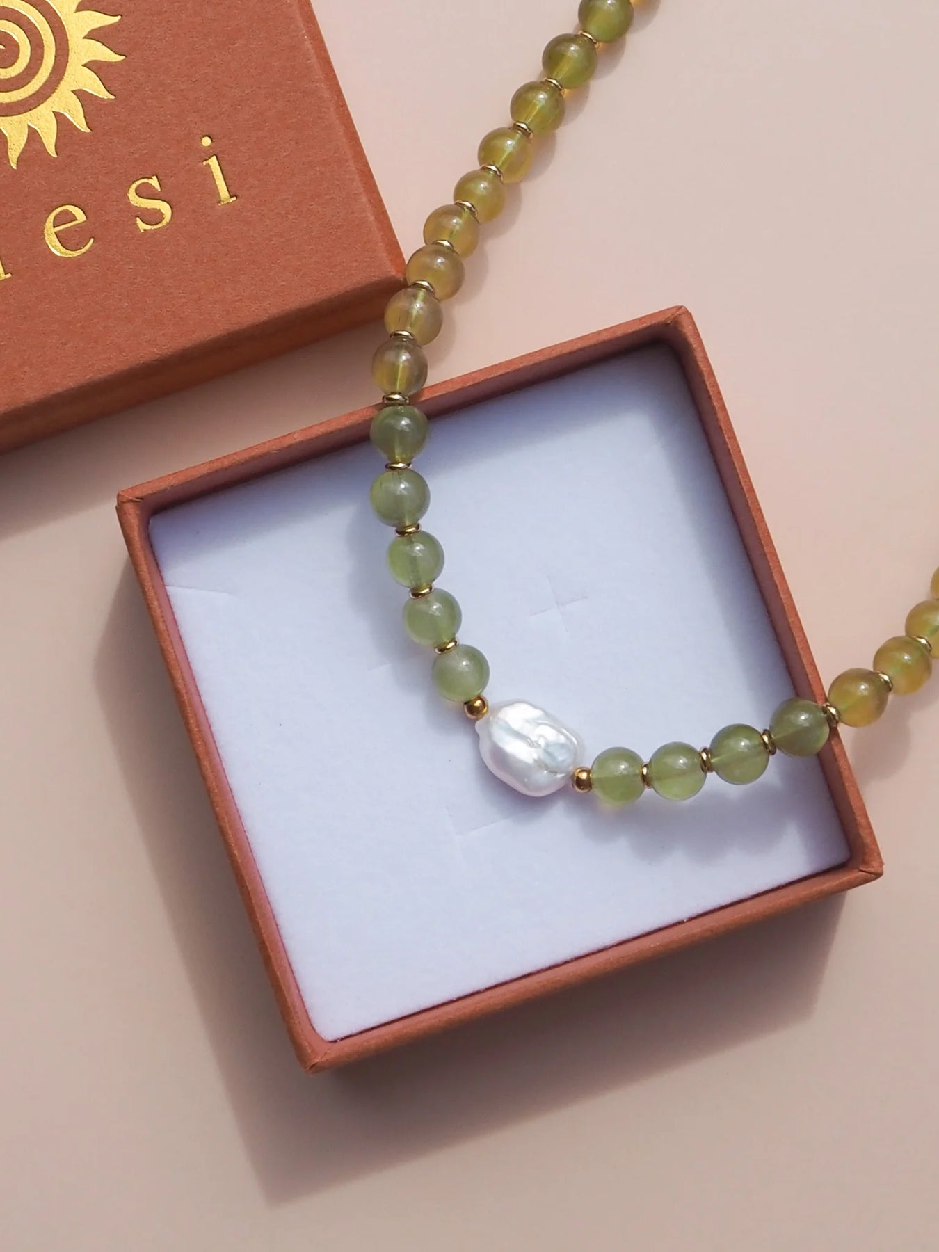 ~ 8mm Natural Green Aventurine Beads with a juicy Naturally Cultured Freshwater Keshi Pearl