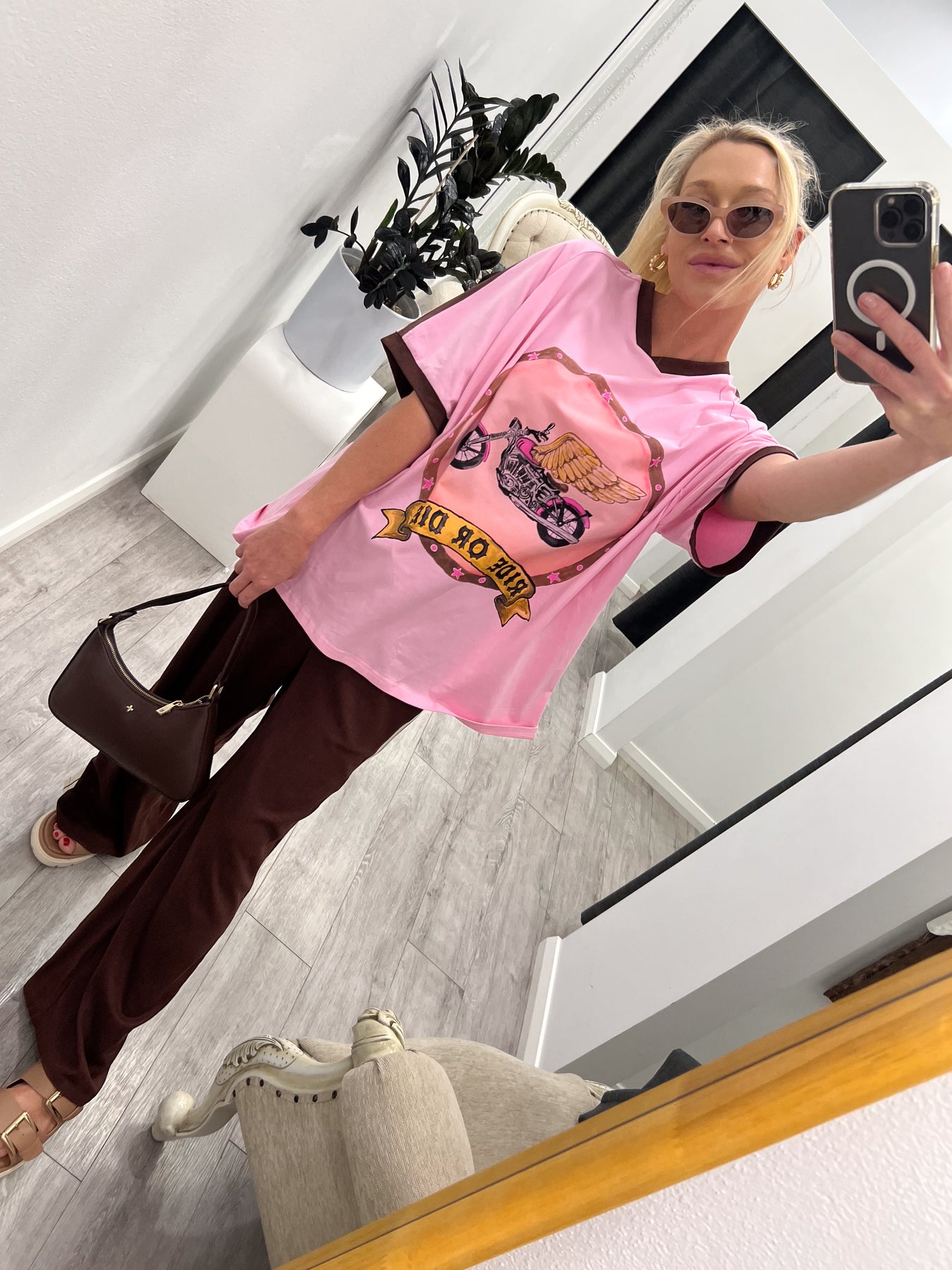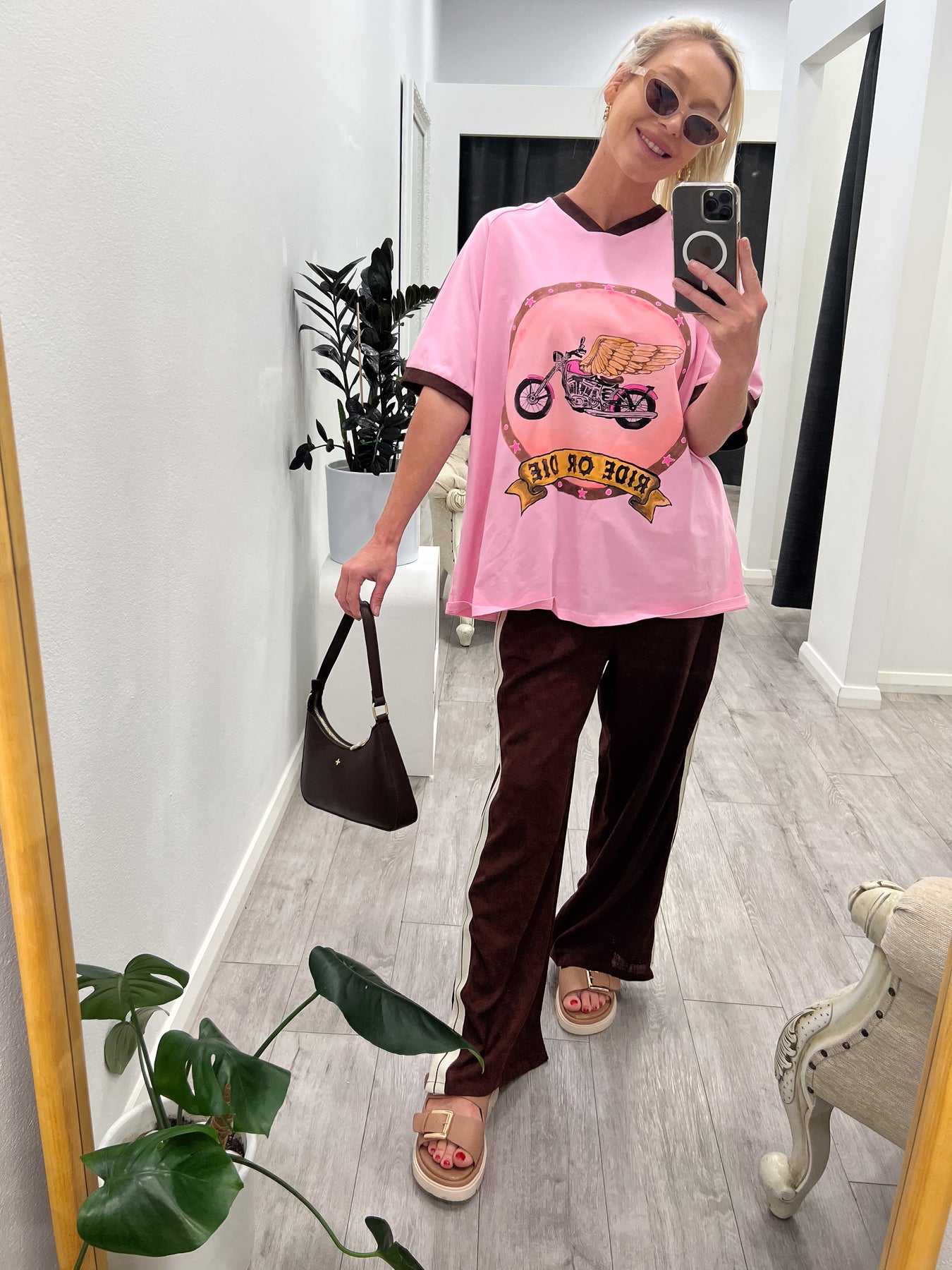 Regular price $105.00This beautiful chocolate set is an absolute must have. With it's peplum style top and straight leg pants, this beauty is the perfect addition to your wardrobe!