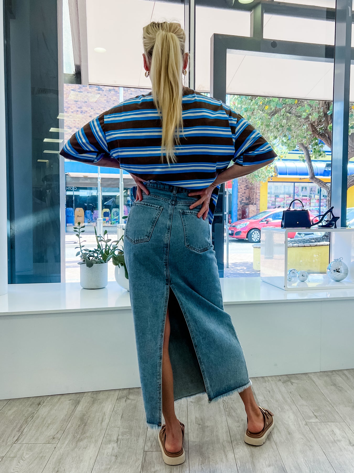 Regular price $89.95In need of a new go to summer skirt, look no further than the Selina Skirt in comfort denim. Featuring a high rise fit and a line skirt. Available in multiple washes to suit every occasion.