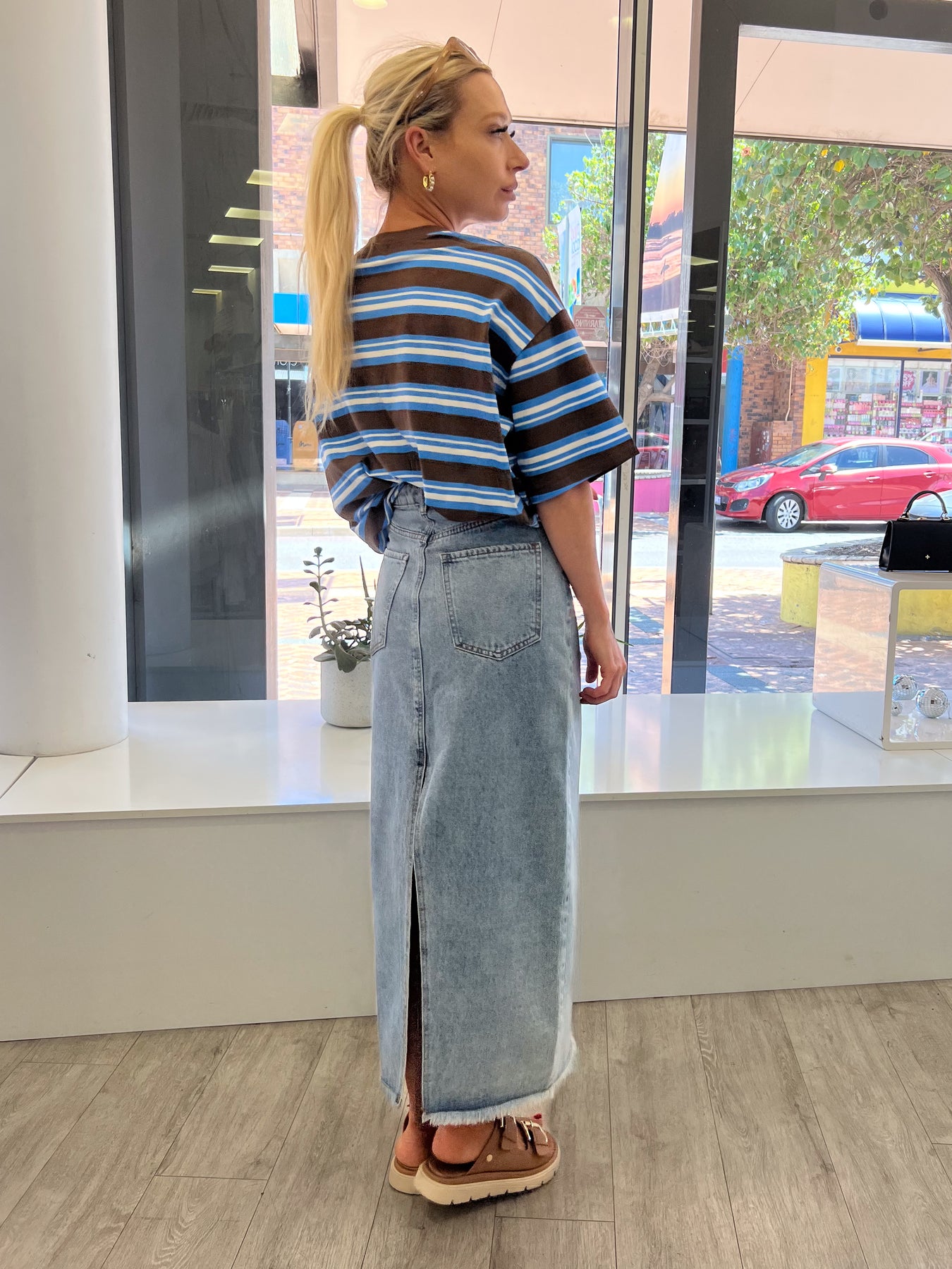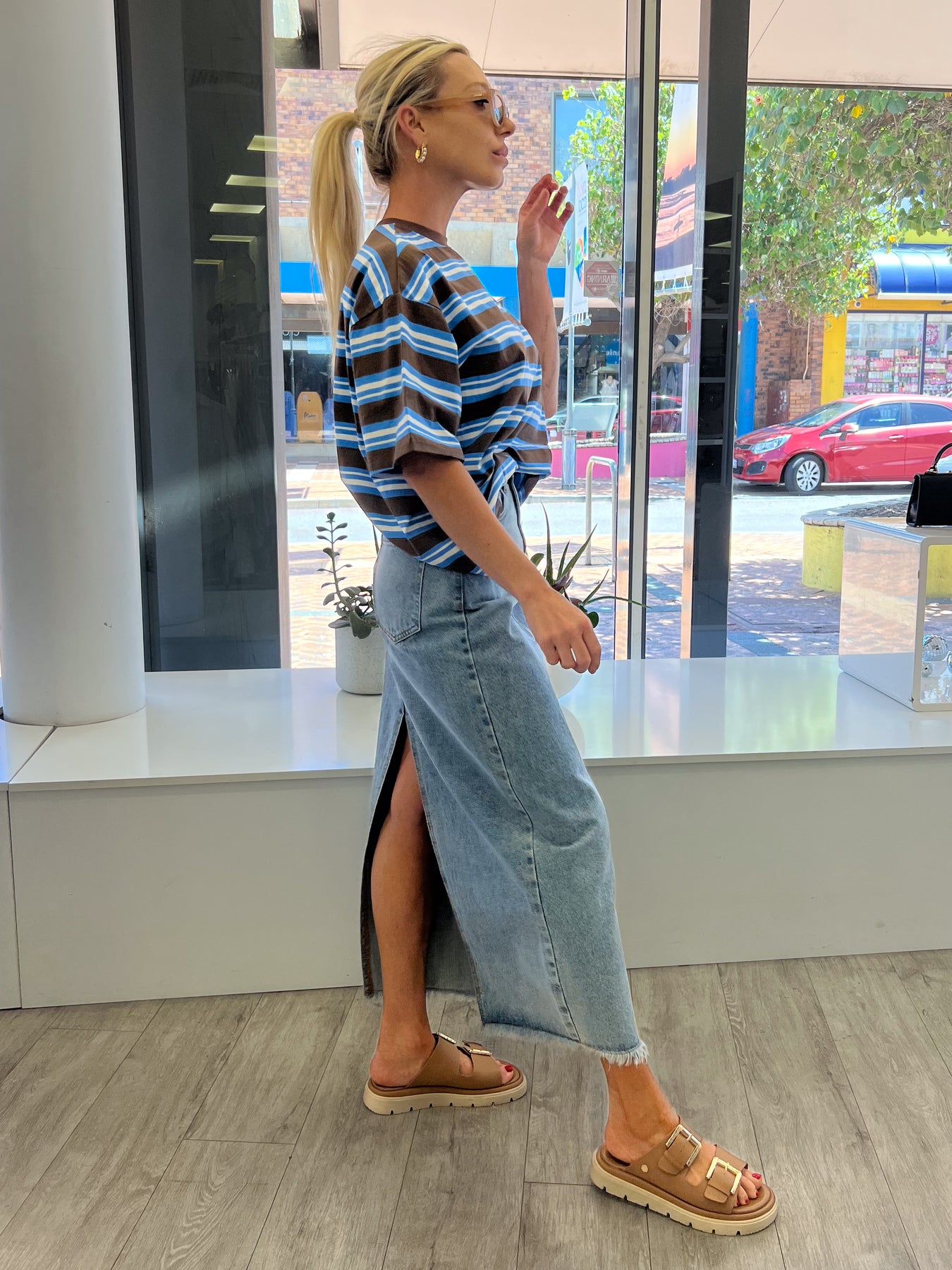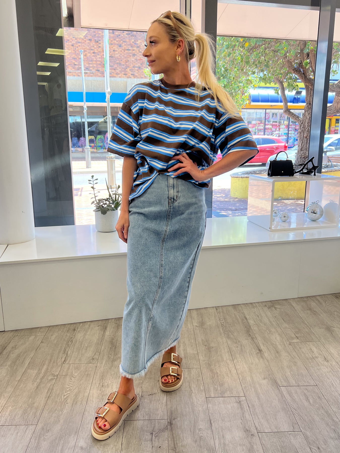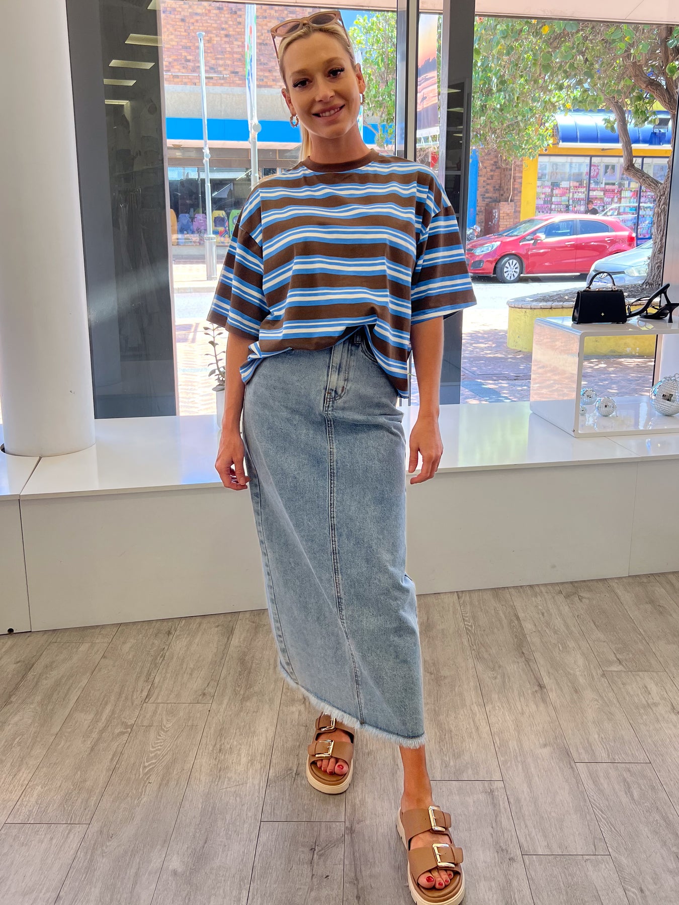 Regular price $79.95Meet your new go to throw on and go shirt, introducing the Sunday Long Sleeve Shirt. Featuring a flattering chocolate and natural stripe this shirt has a covered placket and wide cuff detail. Pair back with your fave denim or throw over a casual outfit for a more casual look.