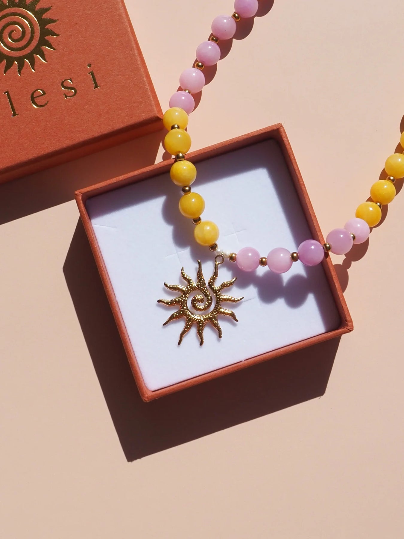Naturally Cultured Freshwater Pearls & Natural Gemstones are each beautifully unique in form. Therefore, please be aware that each necklace will slightly differ. Every pearl and stone is handpicked ensuring ultimate quality & snazziness.