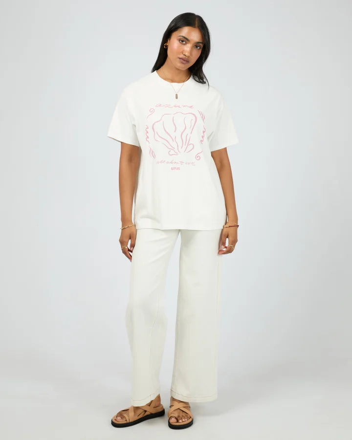 Regular price $59.95The All About Eve Azure Relaxed Tee is a classic white tee with a dainty feminine design on the front, easily styled with light coloured denim and gold sunnies for a casual, everyday look!