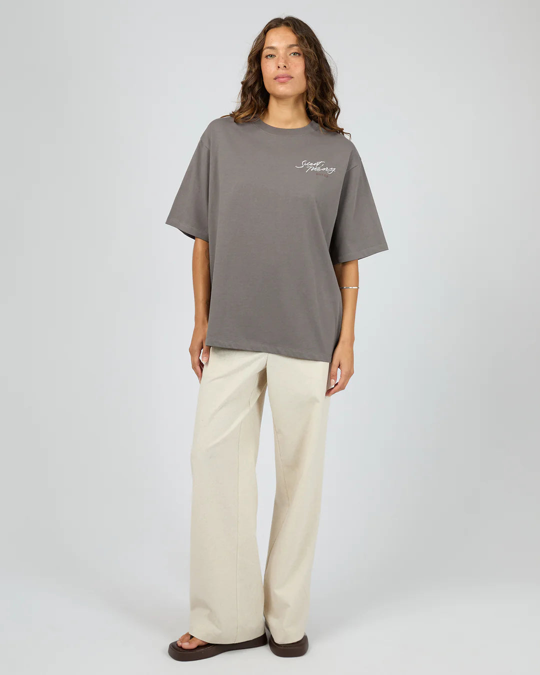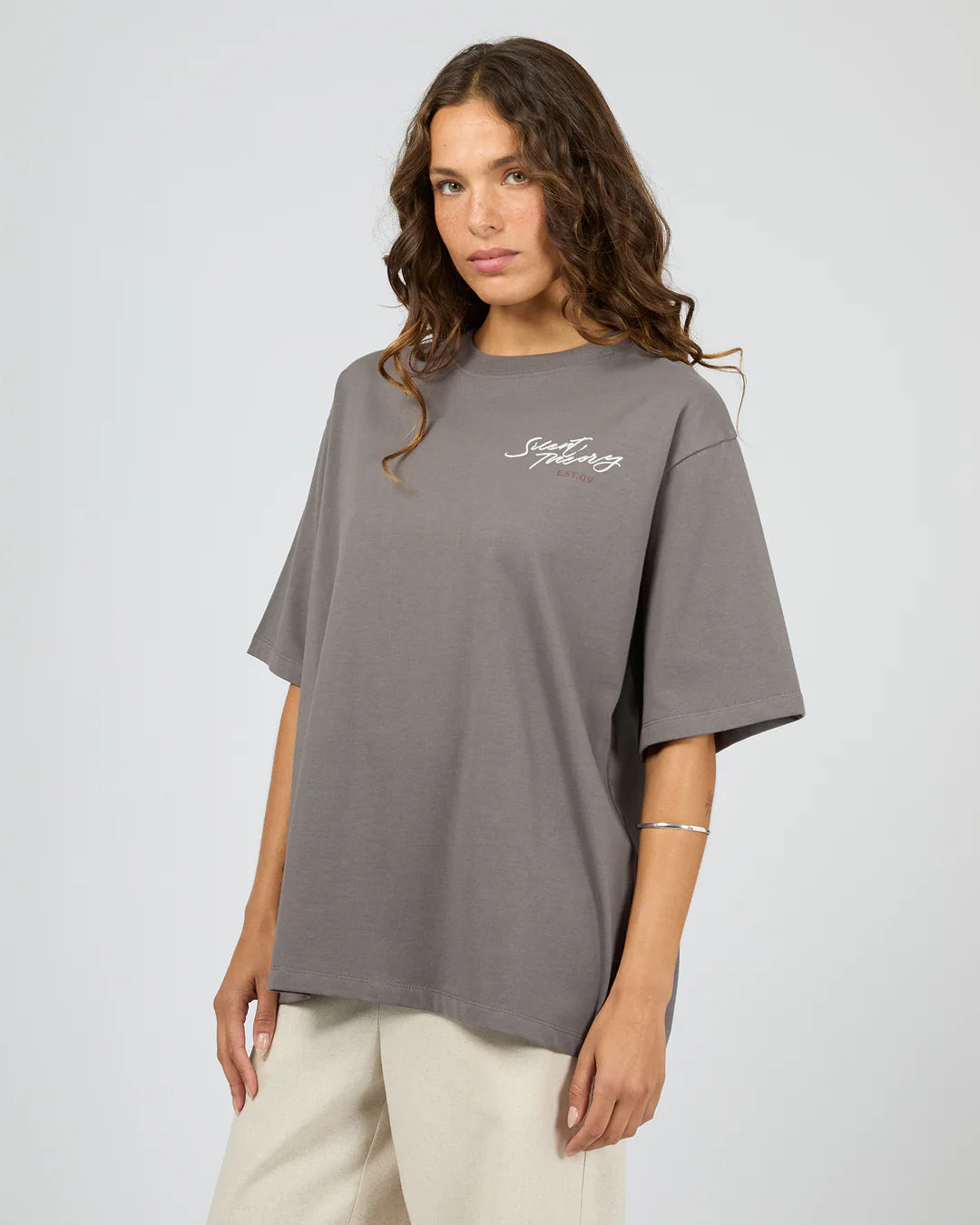 Regular price $39.95Elevate your basics with our Silent Luxe Tee. Made from a soft heavyweight jersey, this tee features an oversized fit that keeps its structure as well as a branded embroidery. An easy-wear, go-to style that's bound to be on high rotation in any wardrobe.