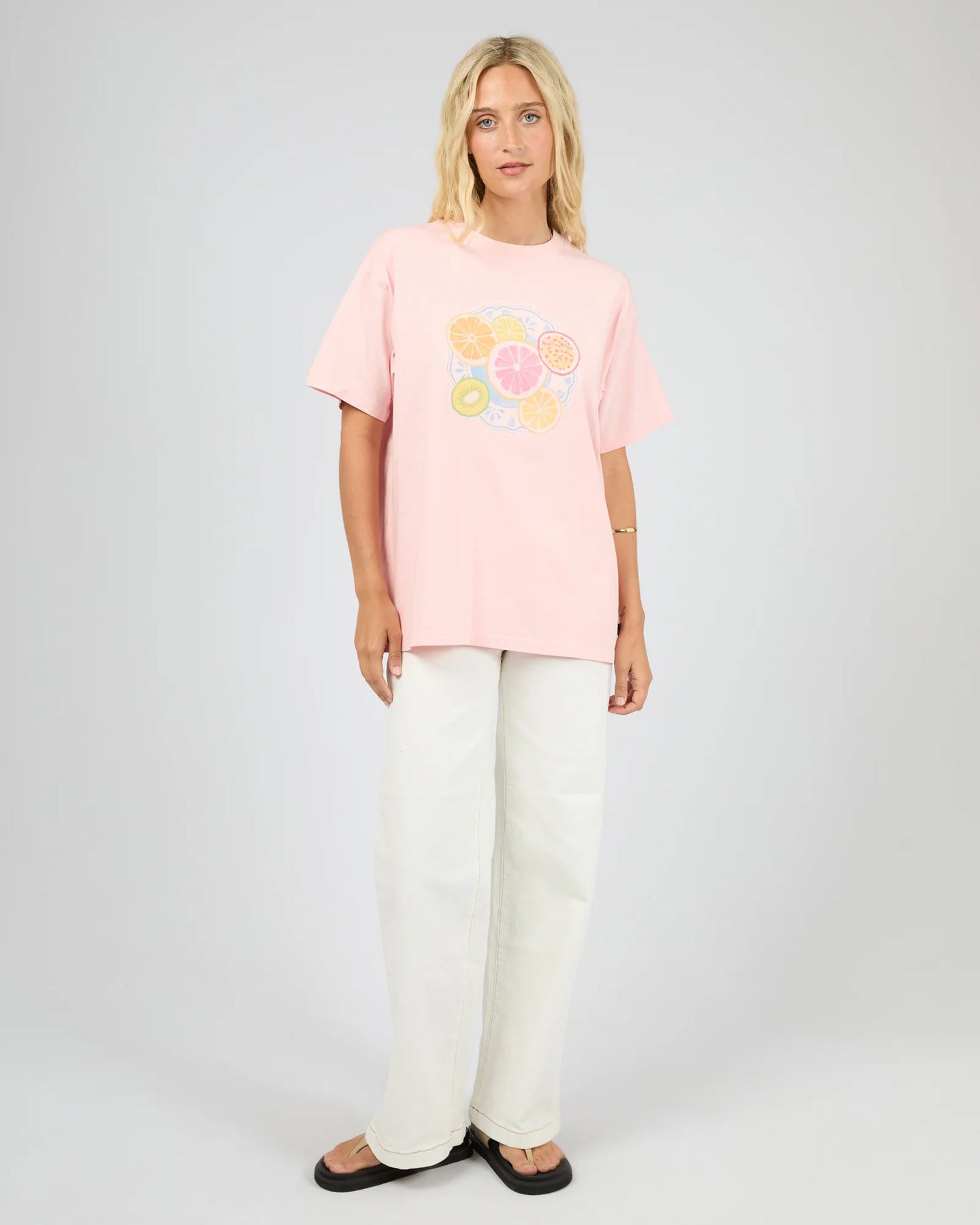 Regular price $59.95The Fruit Salad Relaxed Tee delivers fresh summer vibes with its soft pink cotton base and colourful fruit-inspired print and is the perfect way to add some sweetness to your day. Its playful graphic design brings a touch of nostalgia to your off-duty wardrobe, perfectly balanced with a relaxed, wearable cut. Pair with denim shorts for weekend adventures or layer under a blazer for a fun twist.