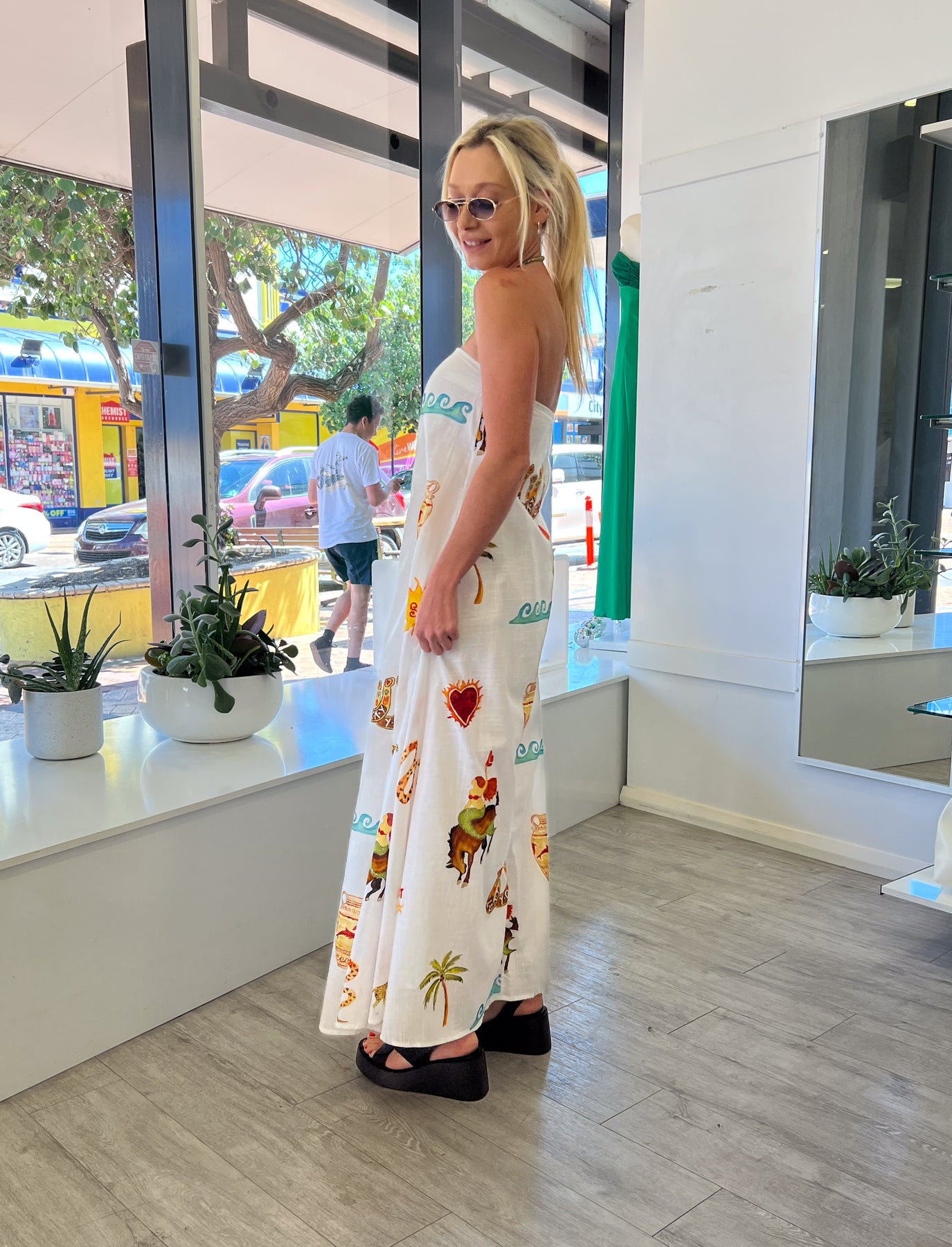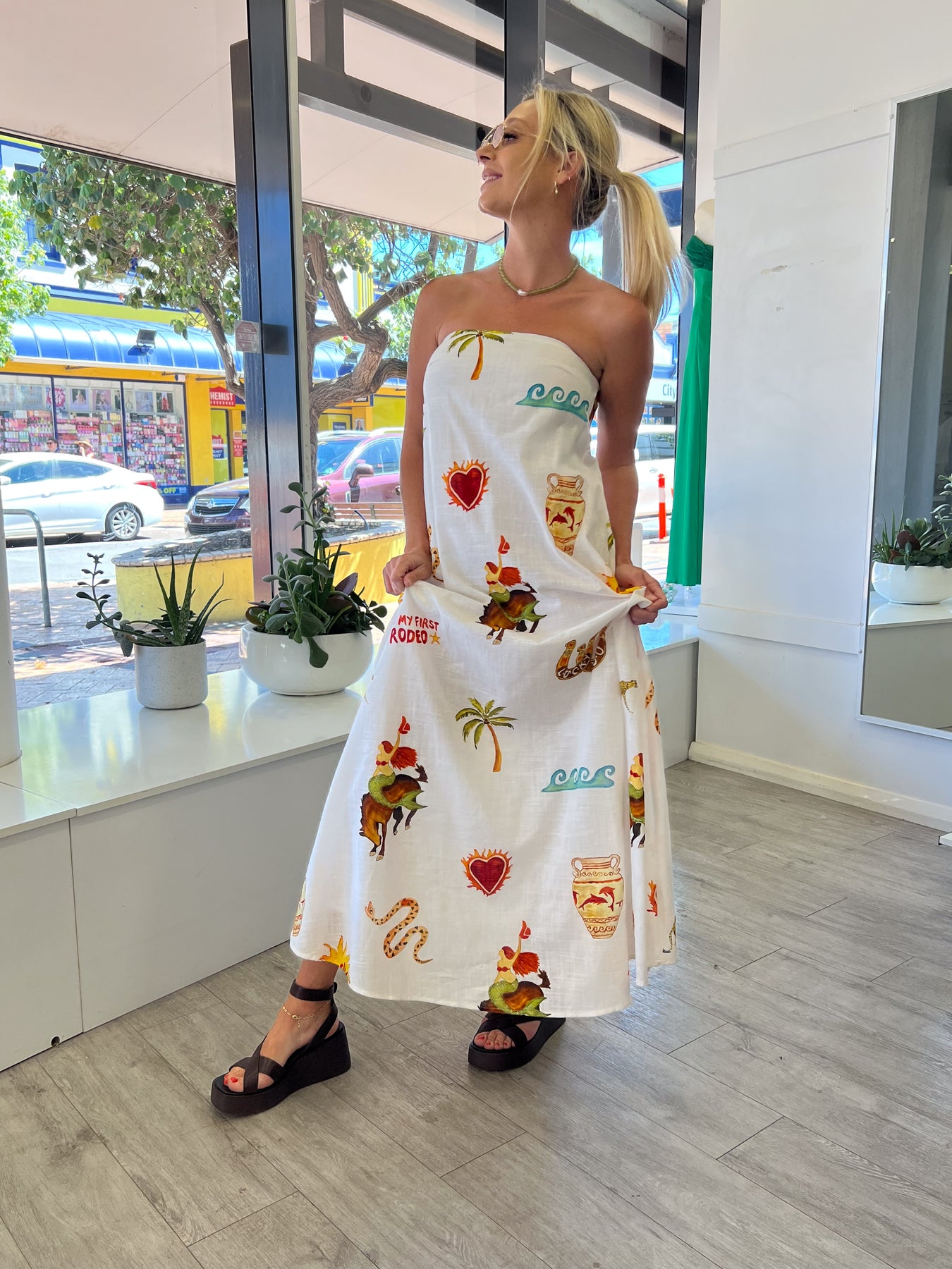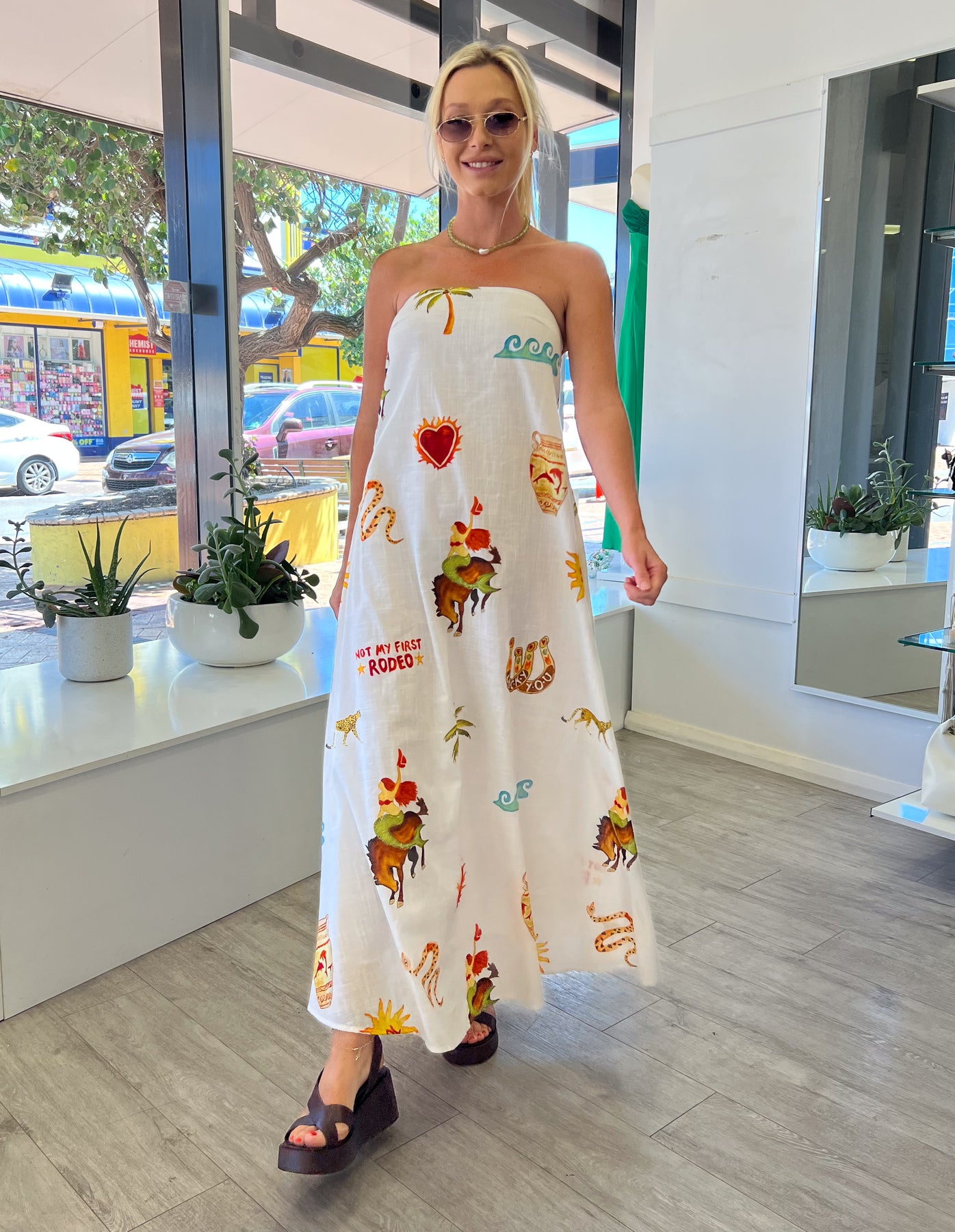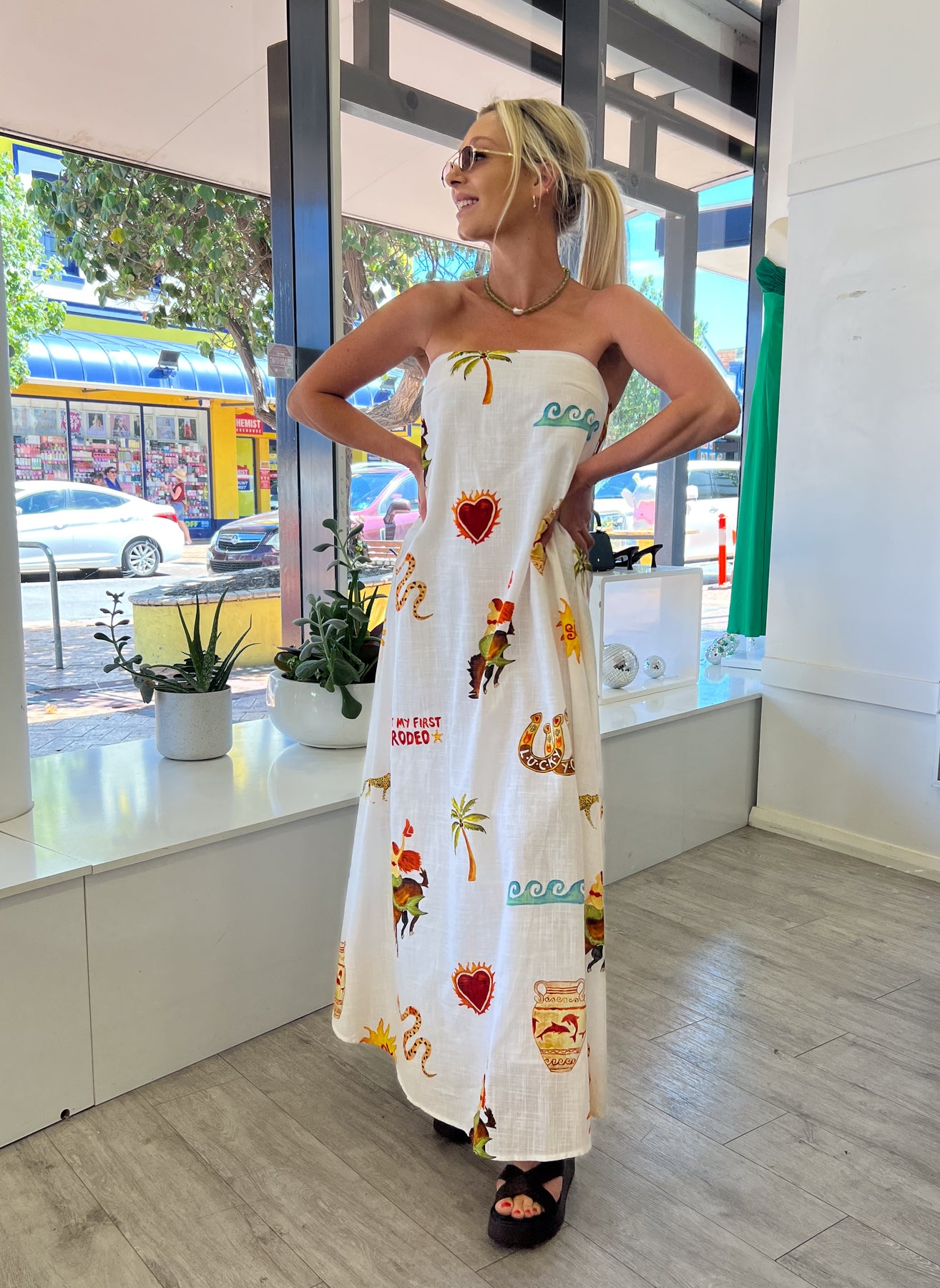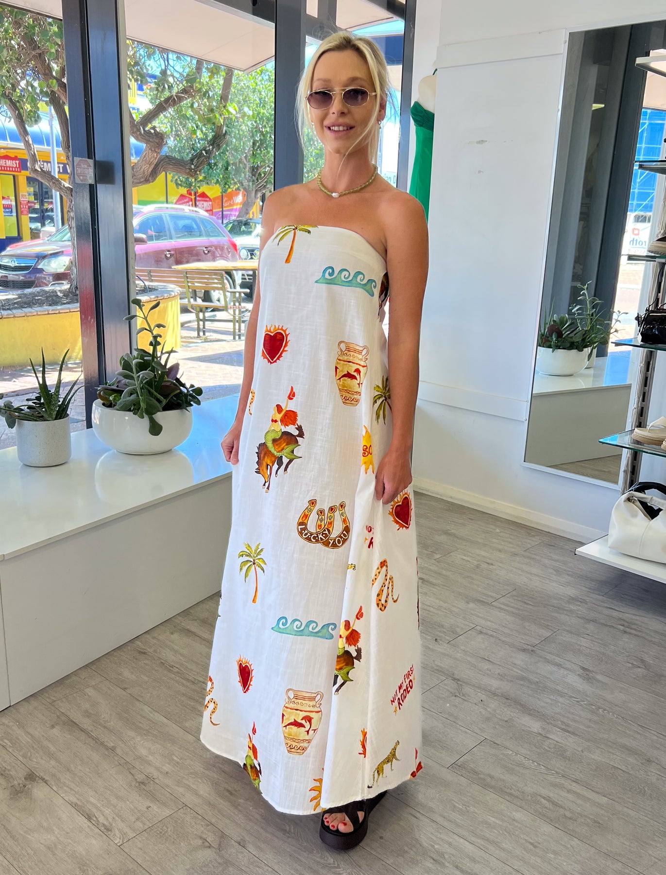 Pair with a wedge and trending pearl necklace for an on trend vibe that screams summer.