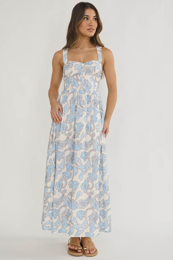 Regular price $105.00This gorgeous floral maxi brings effortless glam with its bandeau neckline & flowy silhouette. Dress it up with heels & statement jewellery or keep it cool with slides & a denim jacket.