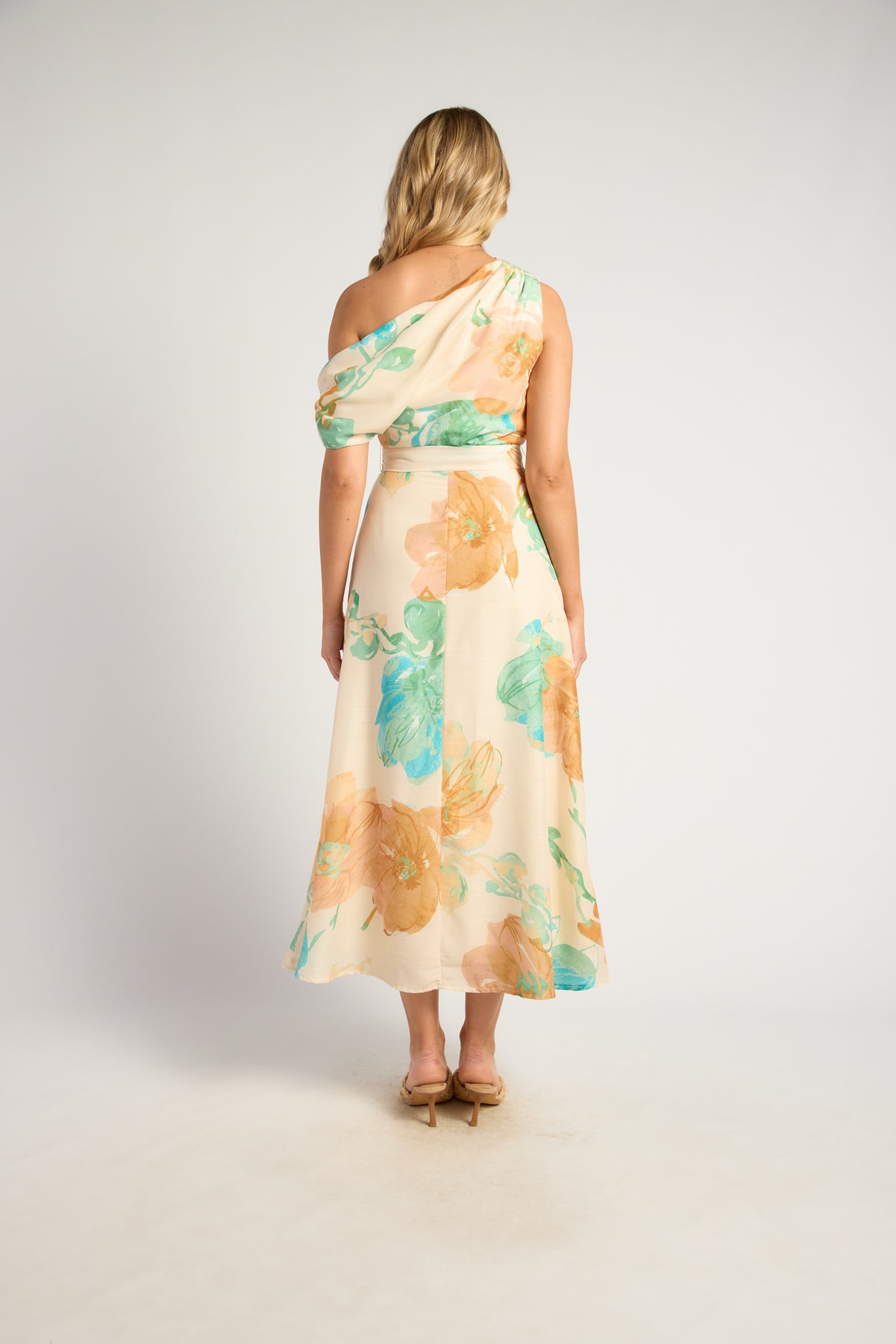 Regular price $95.00The gorgeous Aries Maxi in beautiful hues of tangerine & blue, is the perfect event dress for Spring.
