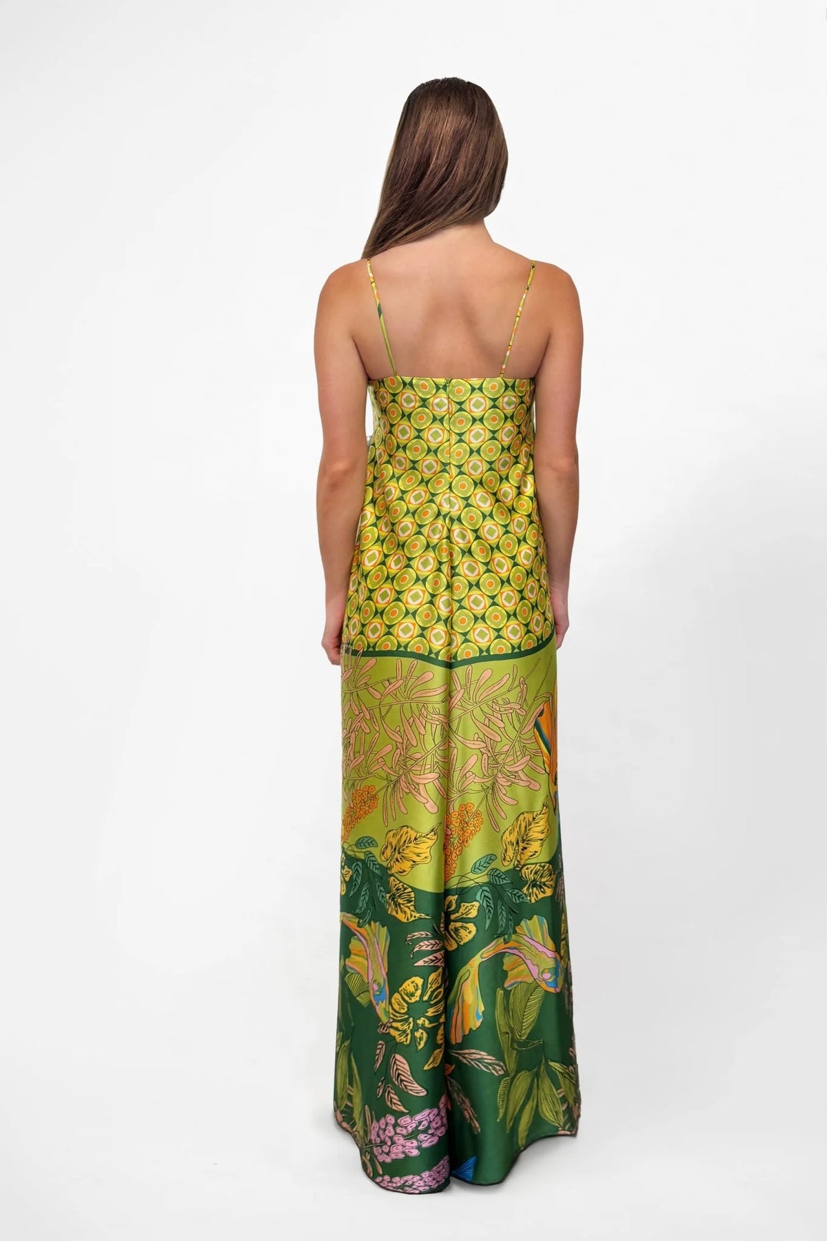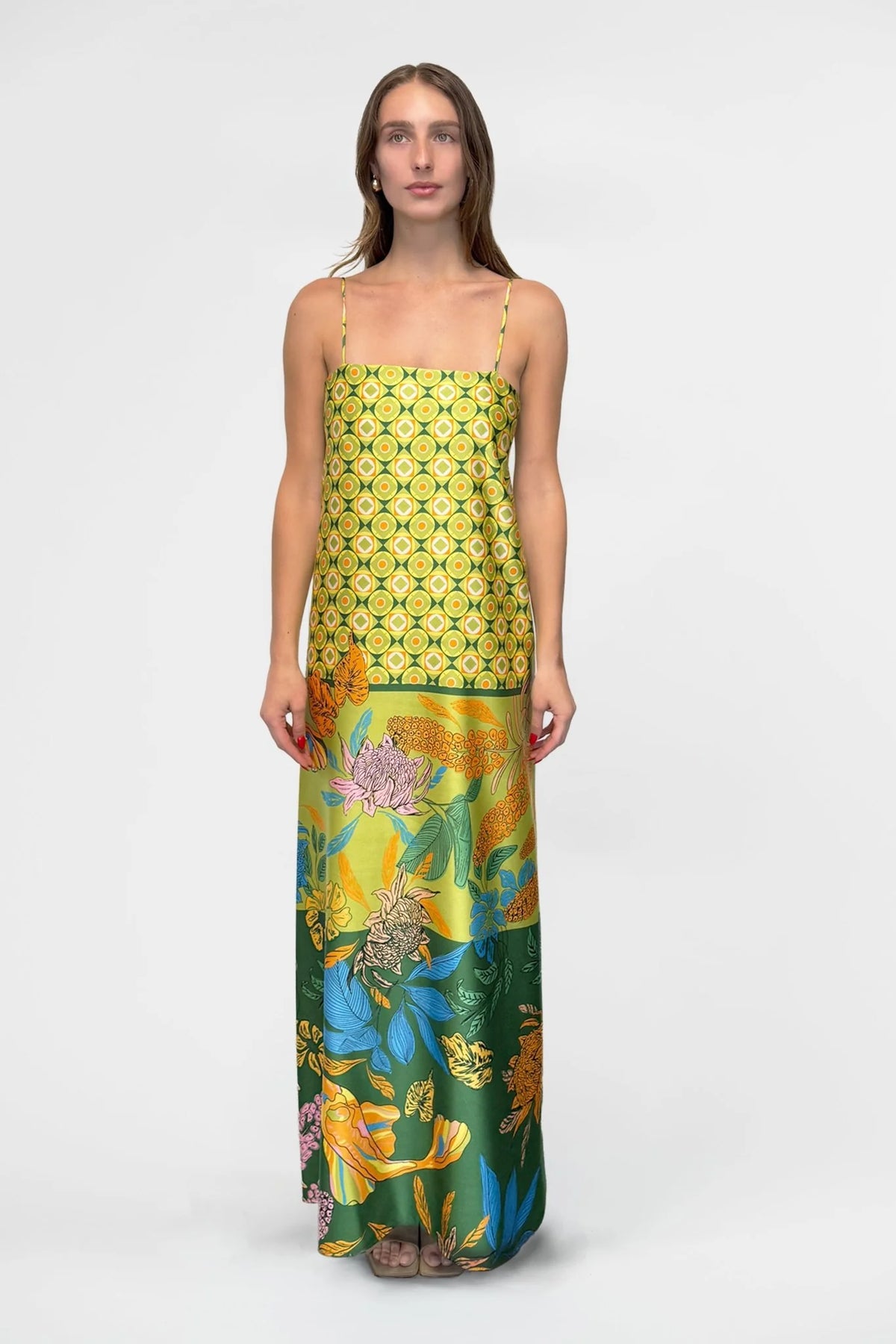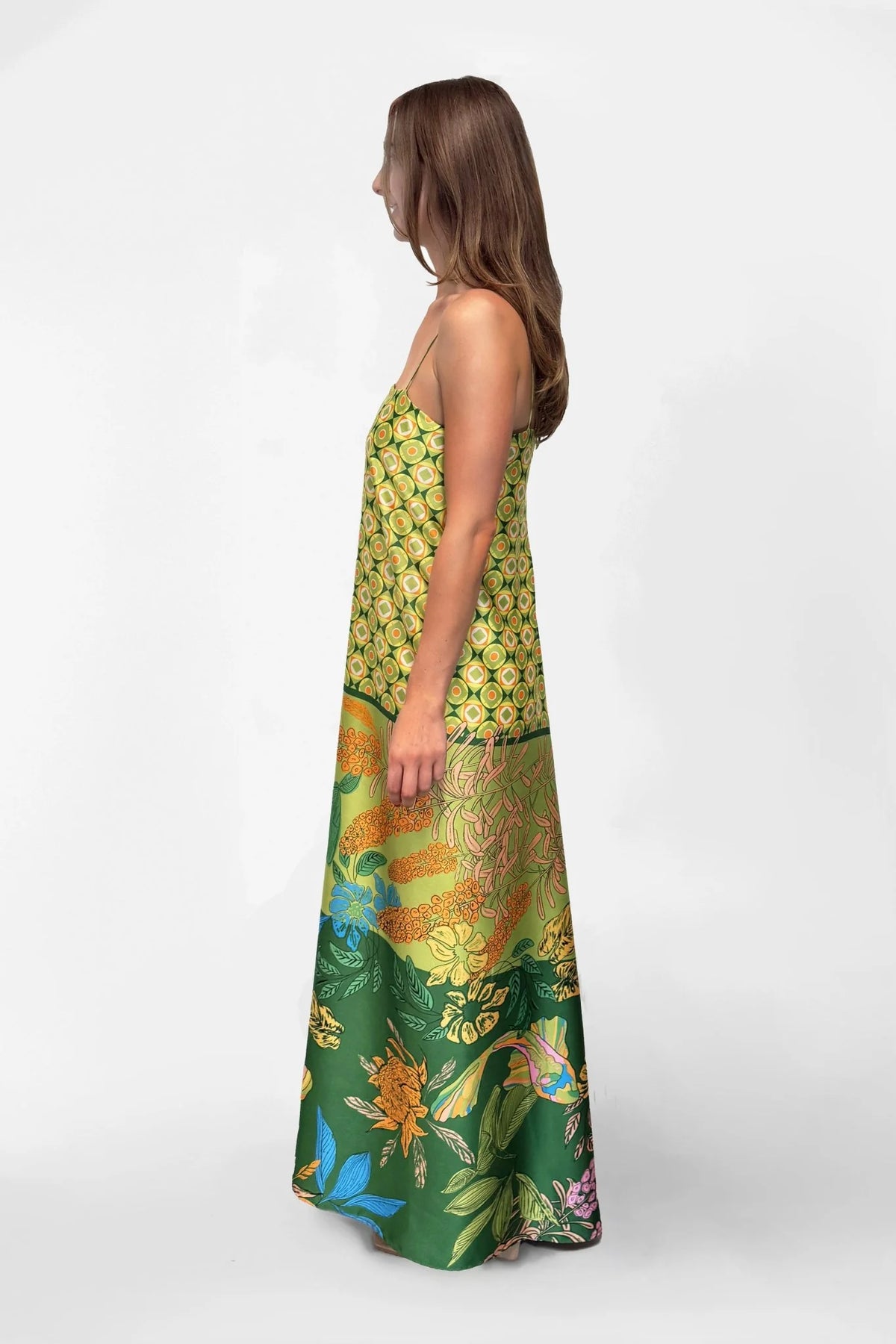 Regular price $449.00The Duplicity Slip in Koi no Nori is cut from lustrous satin patterned with a richly layered Japanese-inspired print. Delicately suspended from slender rouleau straps, the clean square neckline creates a balanced frame for the fluid silhouette. The slip skims the body with a gentle ease, before falling into a soft, ankle-grazing hem that moves effortlessly with each step.
