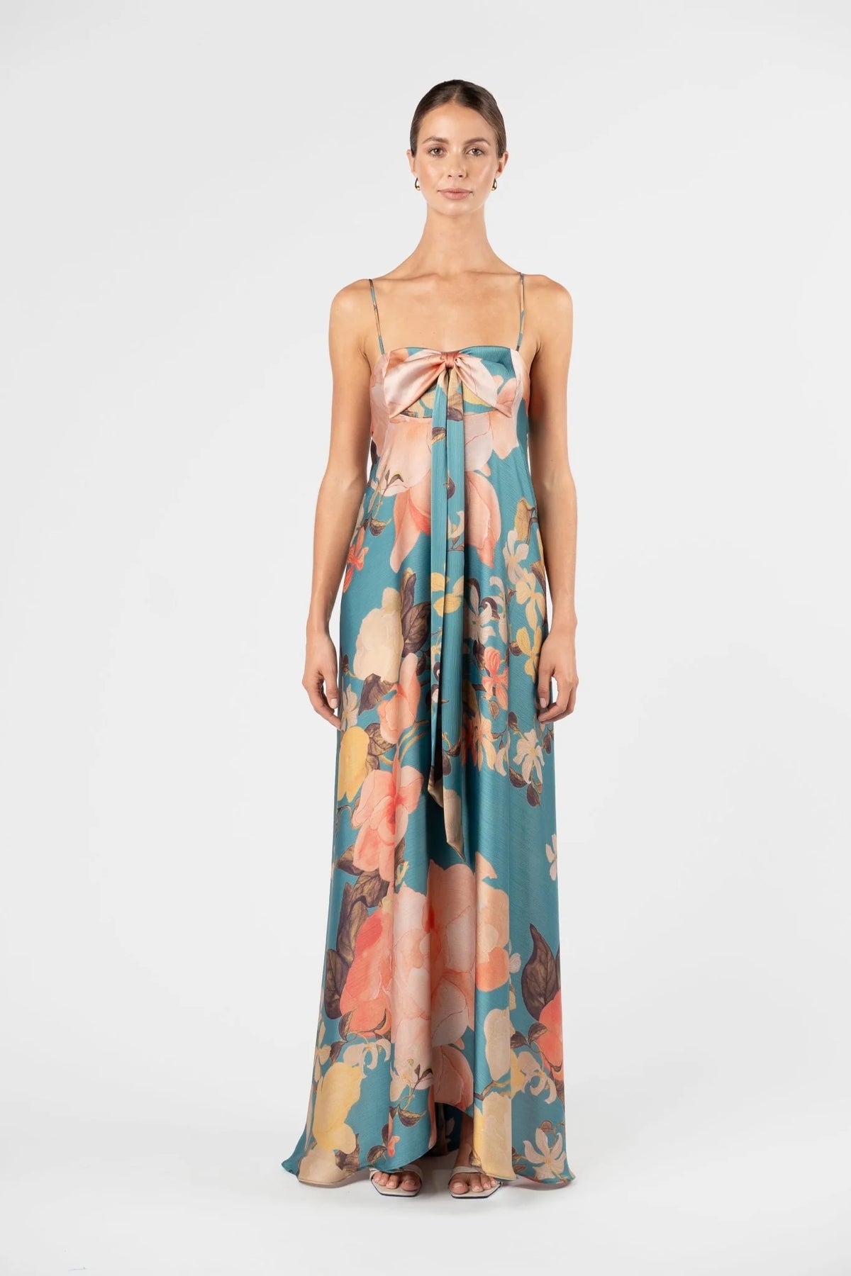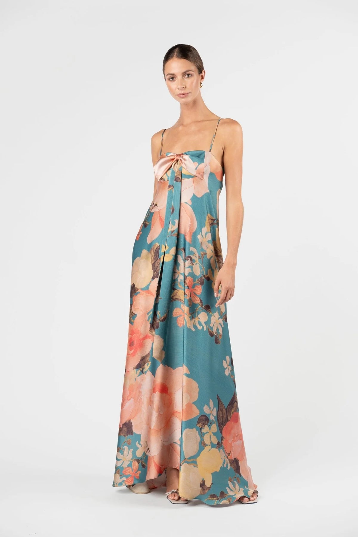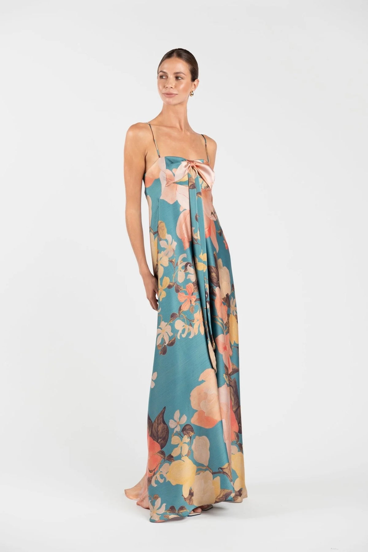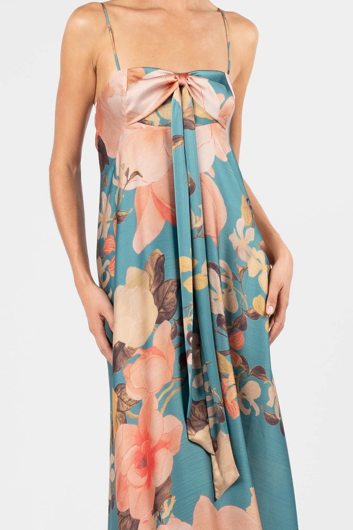 Regular price $499.00The Mademoiselle Maxi in Lagoon evokes a sense of soft elegance and ease. Crafted from lightweight yoryu chiffon satin in a painterly water-inspired print, it moves fluidly with the body. The draped tie detail at the bust can be styled in multiple ways, offering versatility to suit the occasion. Fully lined in self fabric for comfort and a polished finish, the silhouette falls from a structured bodice into a free-flowing skirt that skims the floor with graceful movement. Designed for effortless wear, it’s perfect for destination weddings, long lunches, and summer celebrations.