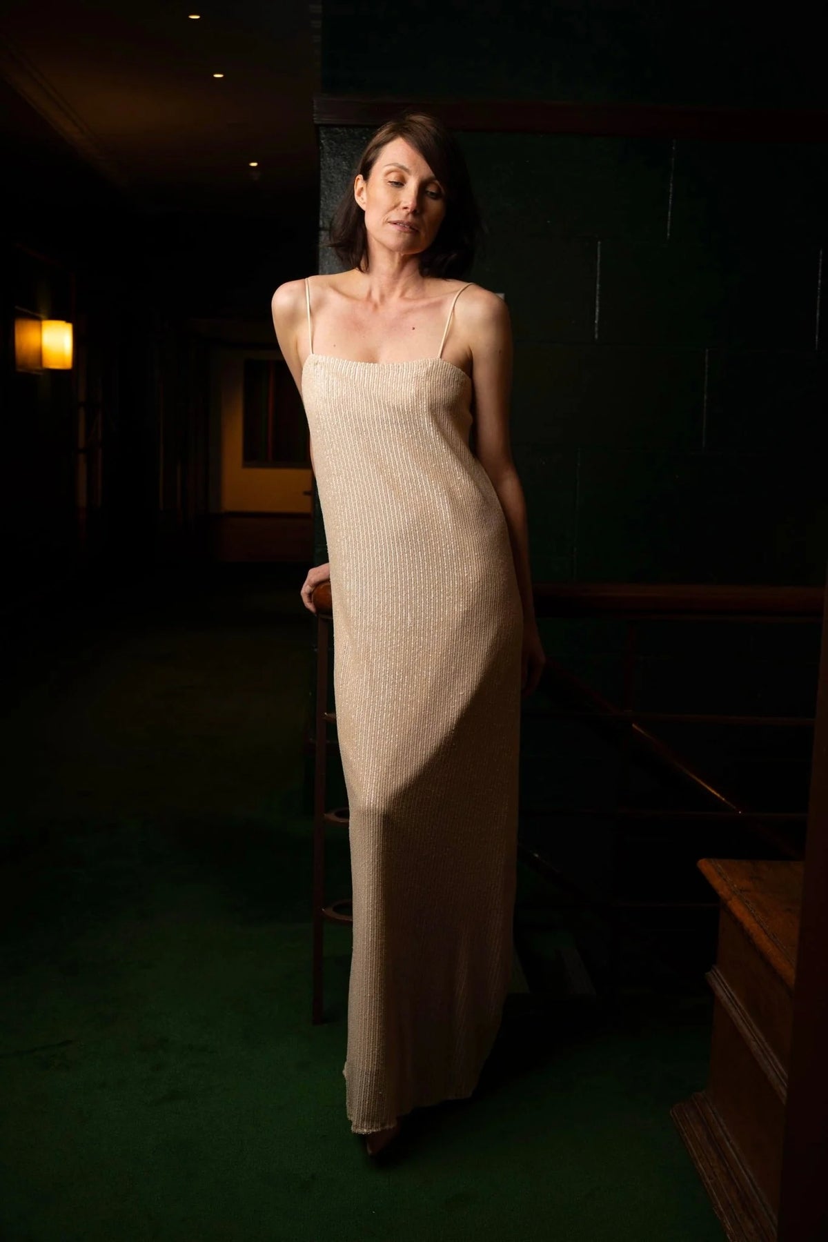 Regular price $559.00Meet the Duplicity Slip in Gatsby Glitter: A vision of high voltage glamour. Designed to catch the light and attention wherever you go and crafted from a luminous iridescent sequin fabric, this maxi slip drapes on the body creating a sleek silhouette falling to a floor length hem. Complete with a flattering square neckline and thin delicate straps, this piece is the embodiment of sophisticated glamour.
