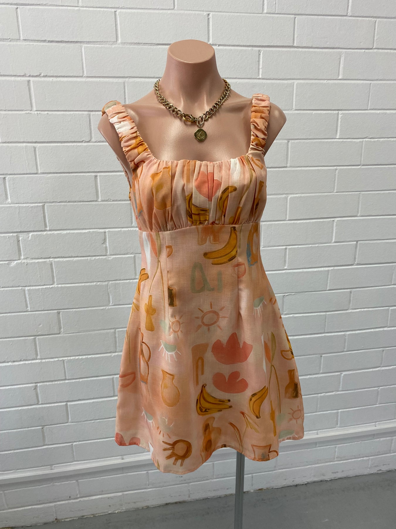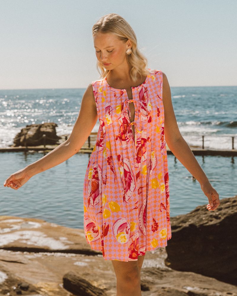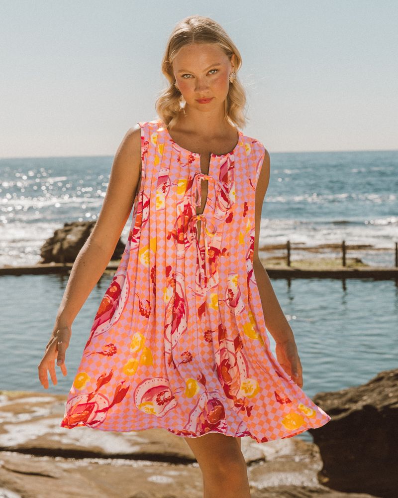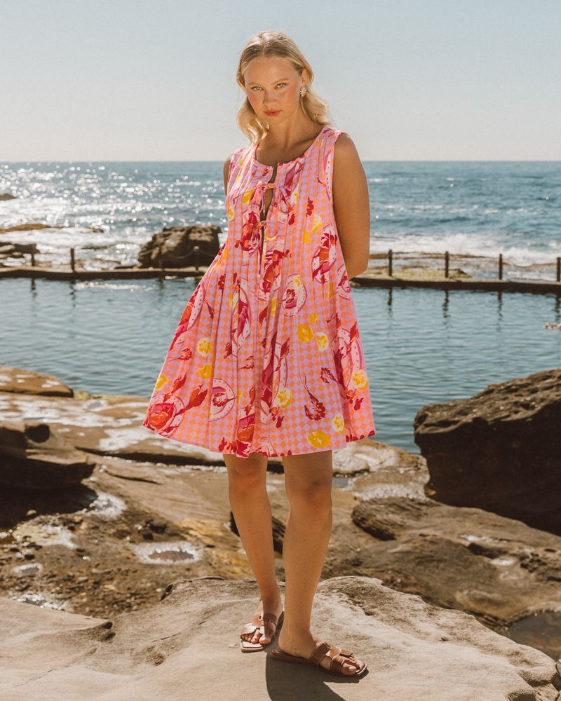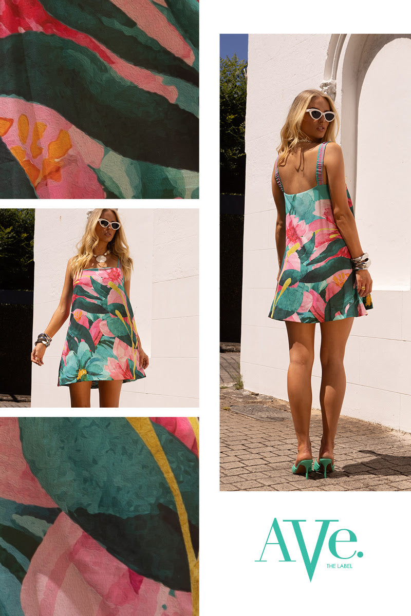 Regular price $99.95The By Frankie Hydrangea Mini Dress brings a fresh, feminine feel with its square neckline and thin, adjustable shoulder straps. Designed with an elasticated backline for added comfort, it features an invisible side zipper and full lining for a smooth, flattering fit. Crafted from 100% cotton, this mini dress is perfect for warm days, weekend outings, and effortless everyday styling.