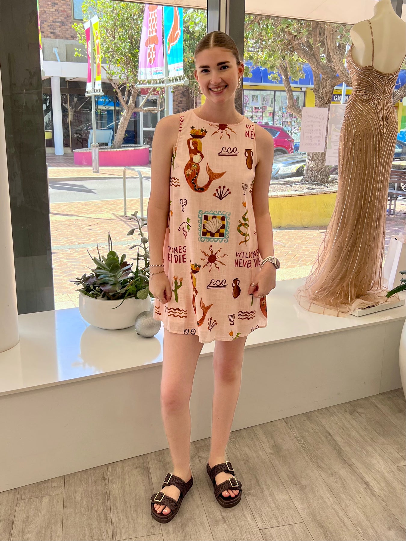 Regular price $89.95Looking for a dress that can take you from the beach to the bar, look no further than our Lenni Mini Dress! Made from a soft linen blend, this mini dress features an elasticated relaxed neck with tie for shaping as well as beaded hardware. Pair back with your favourite sandals and be ready for any summers day occassion.