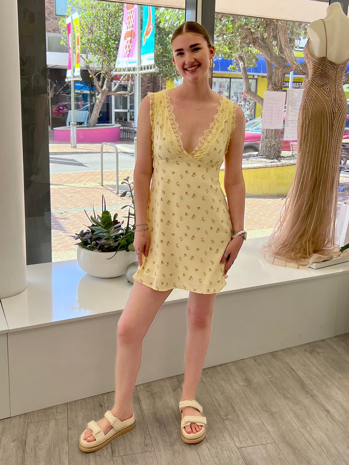 Regular price $105.00The perfect mini dress for any occasion, this cutie is stunning when paired with bone coloured heels and your favourite jewellery.