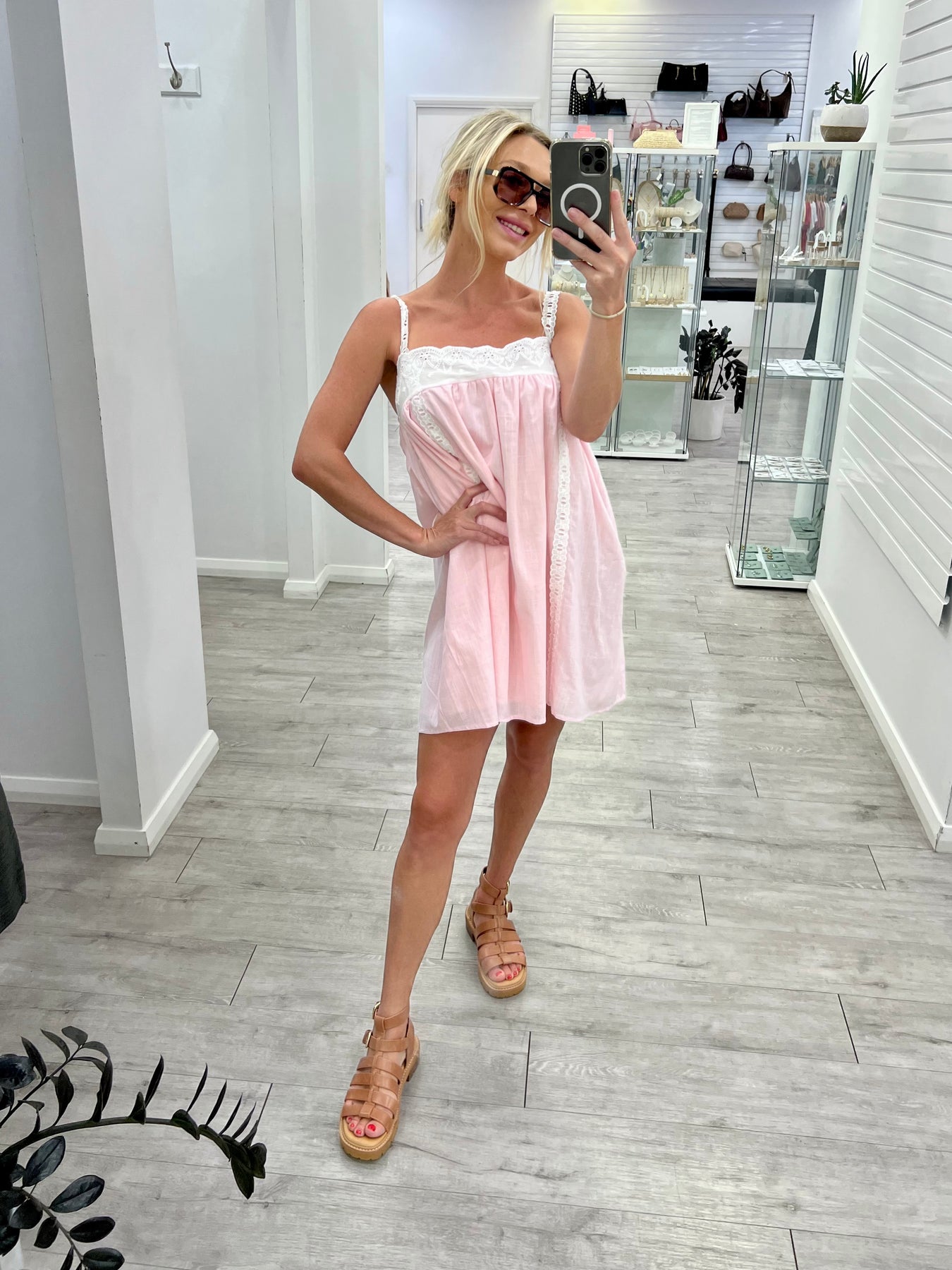 Regular price $99.95The By Frankie Roxy Dress is a versatile and stylish cotton mini dress designed for effortless everyday wear. Featuring a flattering square neckline with cream piping detail along the neckline and backline, this dress is finished with thin, adjustable shoulder straps and an elasticated back for a comfortable, tailored fit. Practical side pockets add functionality, making it perfect for casual days, brunches, or weekend outings. Made from 100% cotton, the Denim Mini Dress combines timeless style with breathable comfort.
