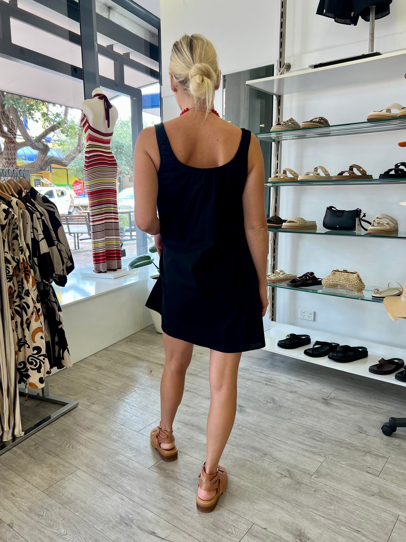 Regular price $99.95The By Frankie Tie Mini Dress is a casual yet chic mini dress designed for effortless everyday wear. Featuring an elasticated neckline and backline for a comfortable, flexible fit, this sleeveless dress is finished with a subtle tie detail at the neckline. Practical side pockets add functionality without compromising style, making the By Frankie Tie Mini Dress is perfect for brunches, weekend outings, or warm-weather days.