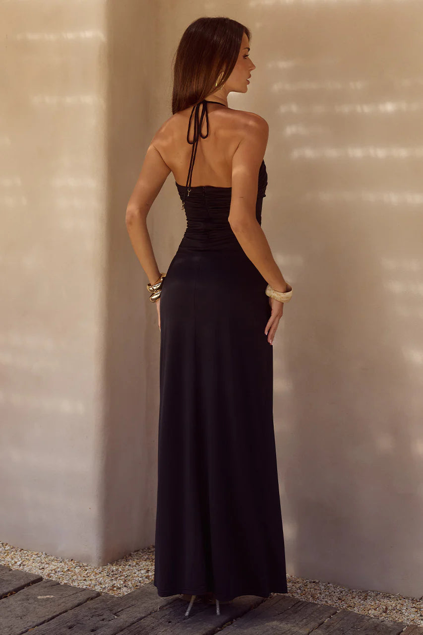 Featuring a feminine silhouette our slinky Posey Maxi Dress will be the perfect party dress, with a deep cowl neck and open back.