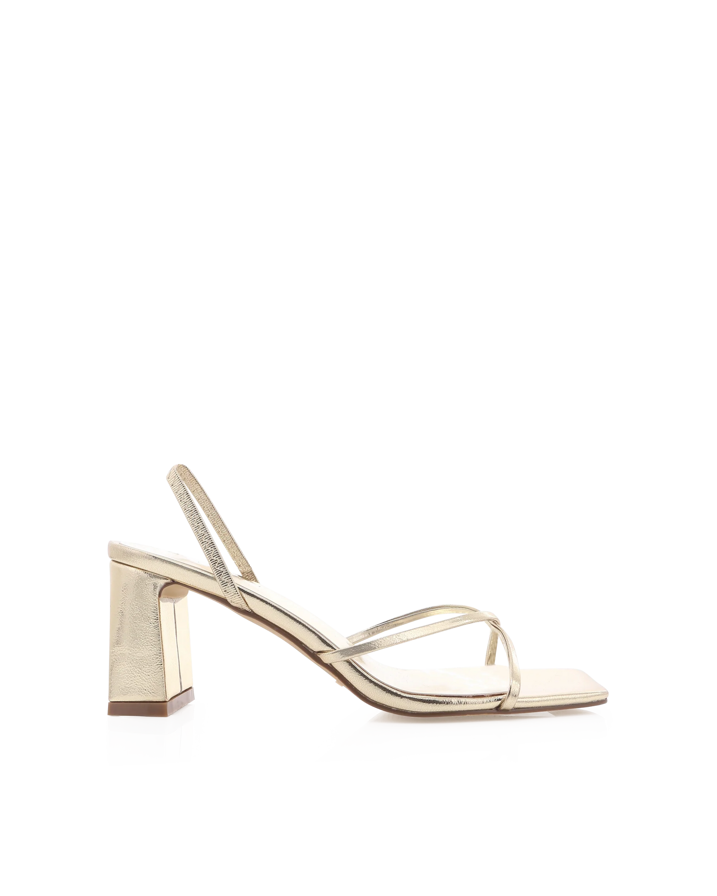 - sling back ankle strap with adjustable buckle fastening in gold hardware