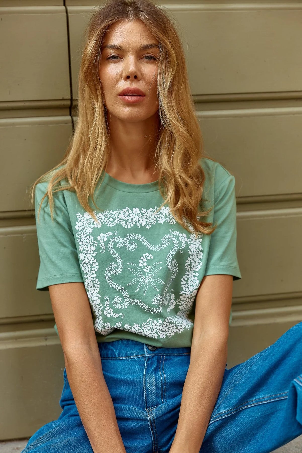 Regular price $59.95The All About Eve Azure Relaxed Tee is a classic white tee with a dainty feminine design on the front, easily styled with light coloured denim and gold sunnies for a casual, everyday look!