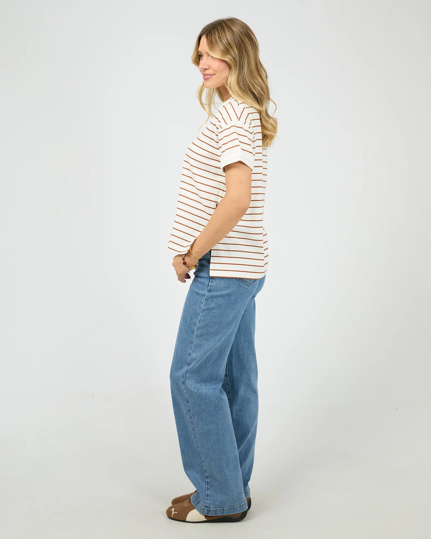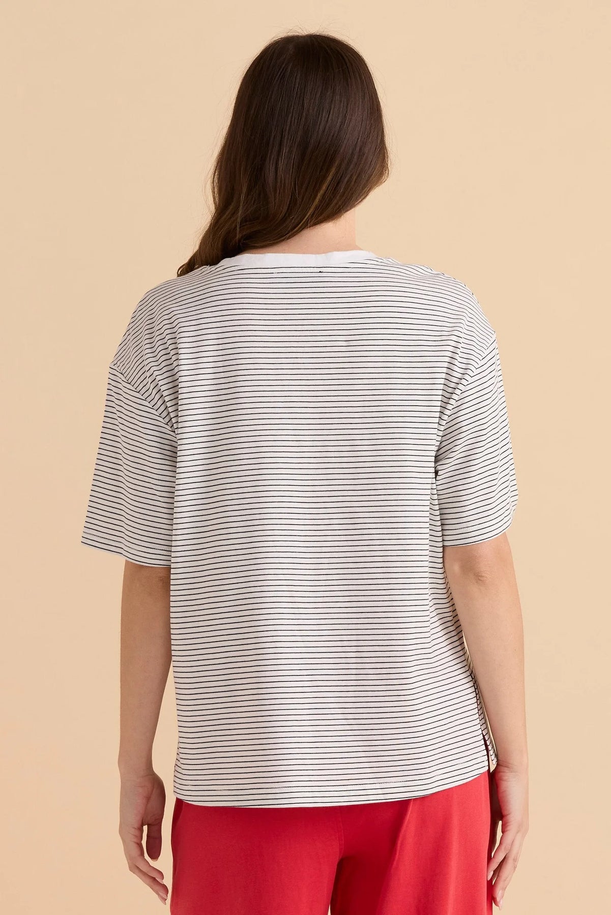 Regular price $39.95All About Eve Washed Stripe Tee features a garment wash with a branded chest embroidery. Styled back with denim jeans and sneakers for a chic weekend vibe.