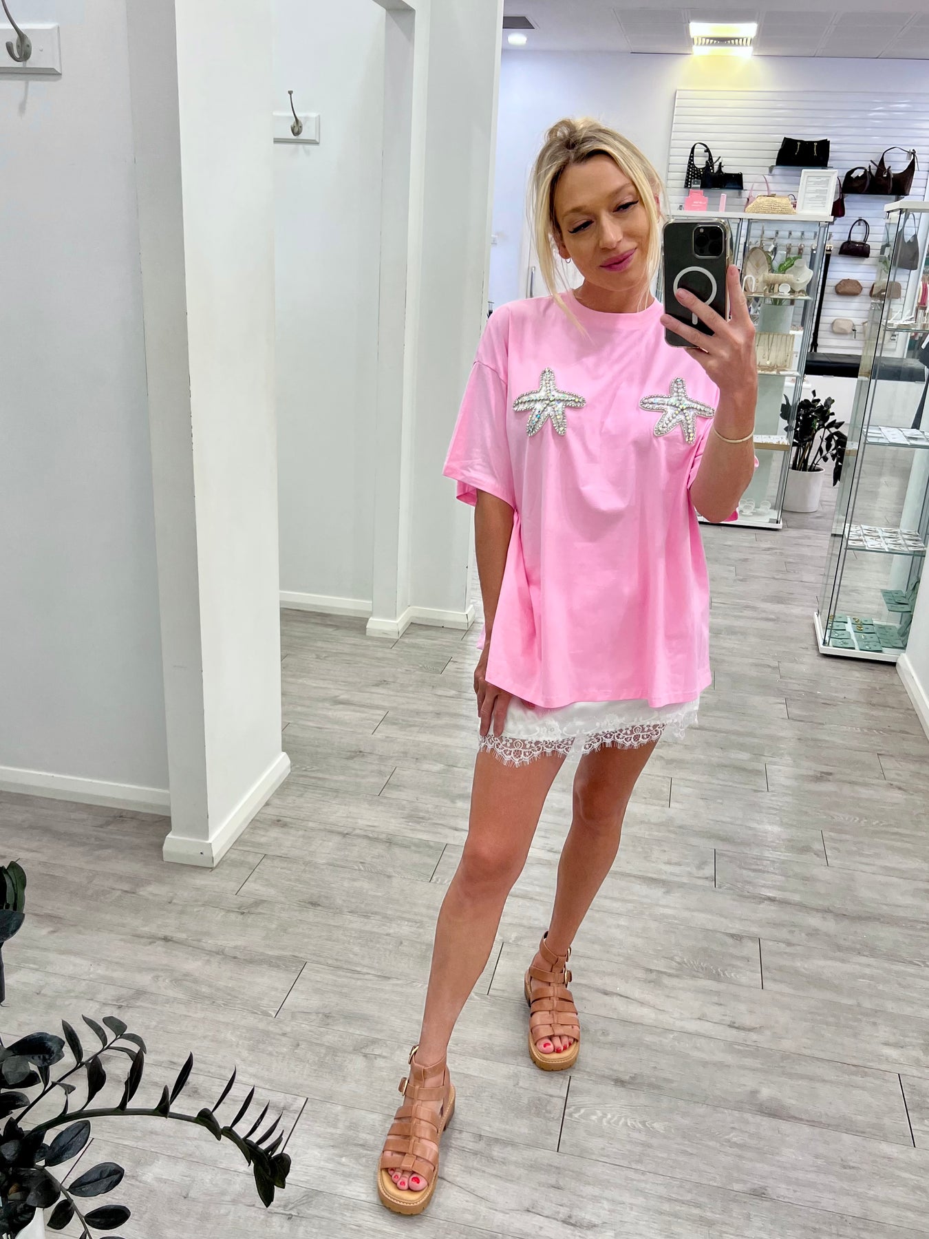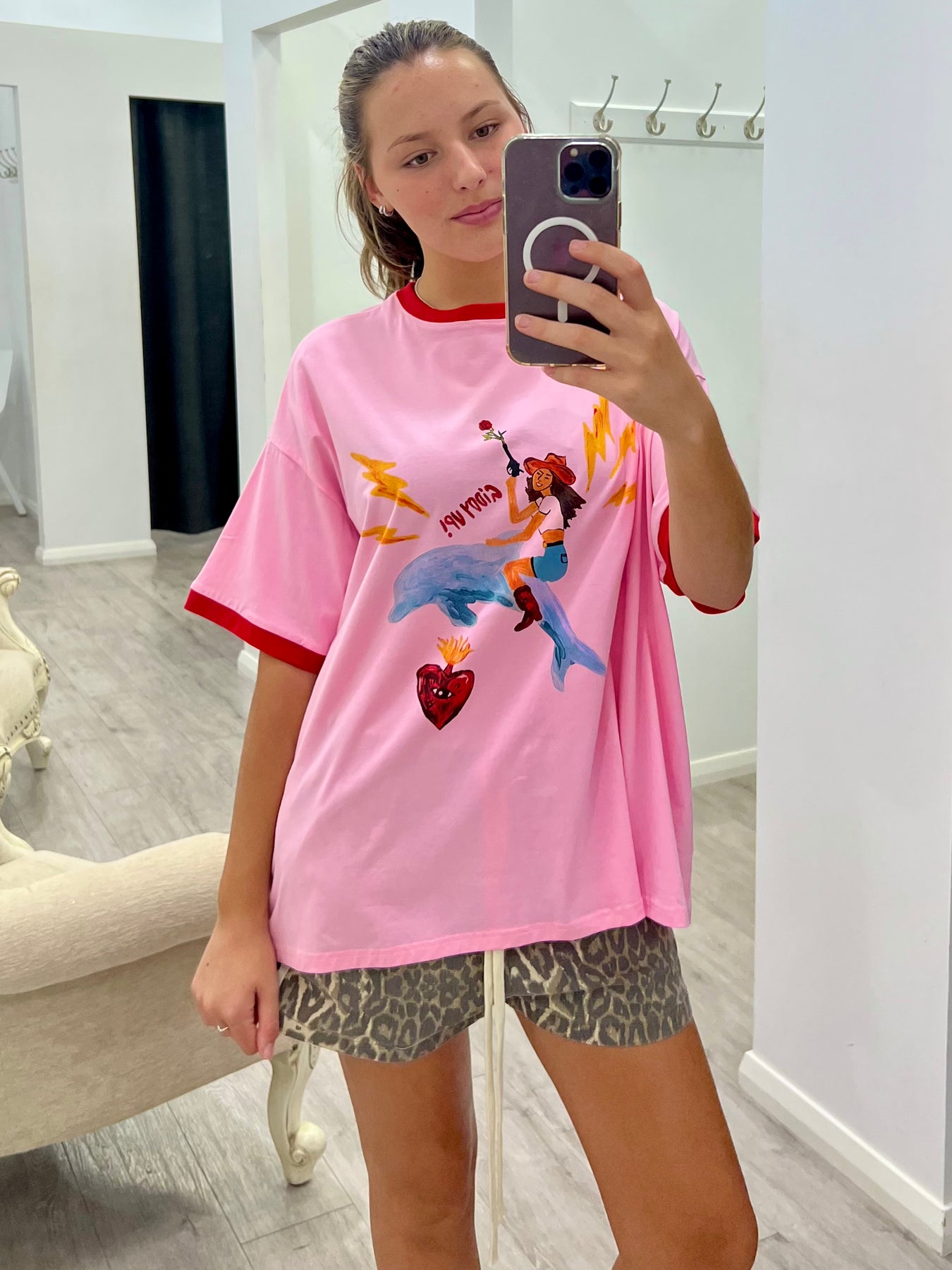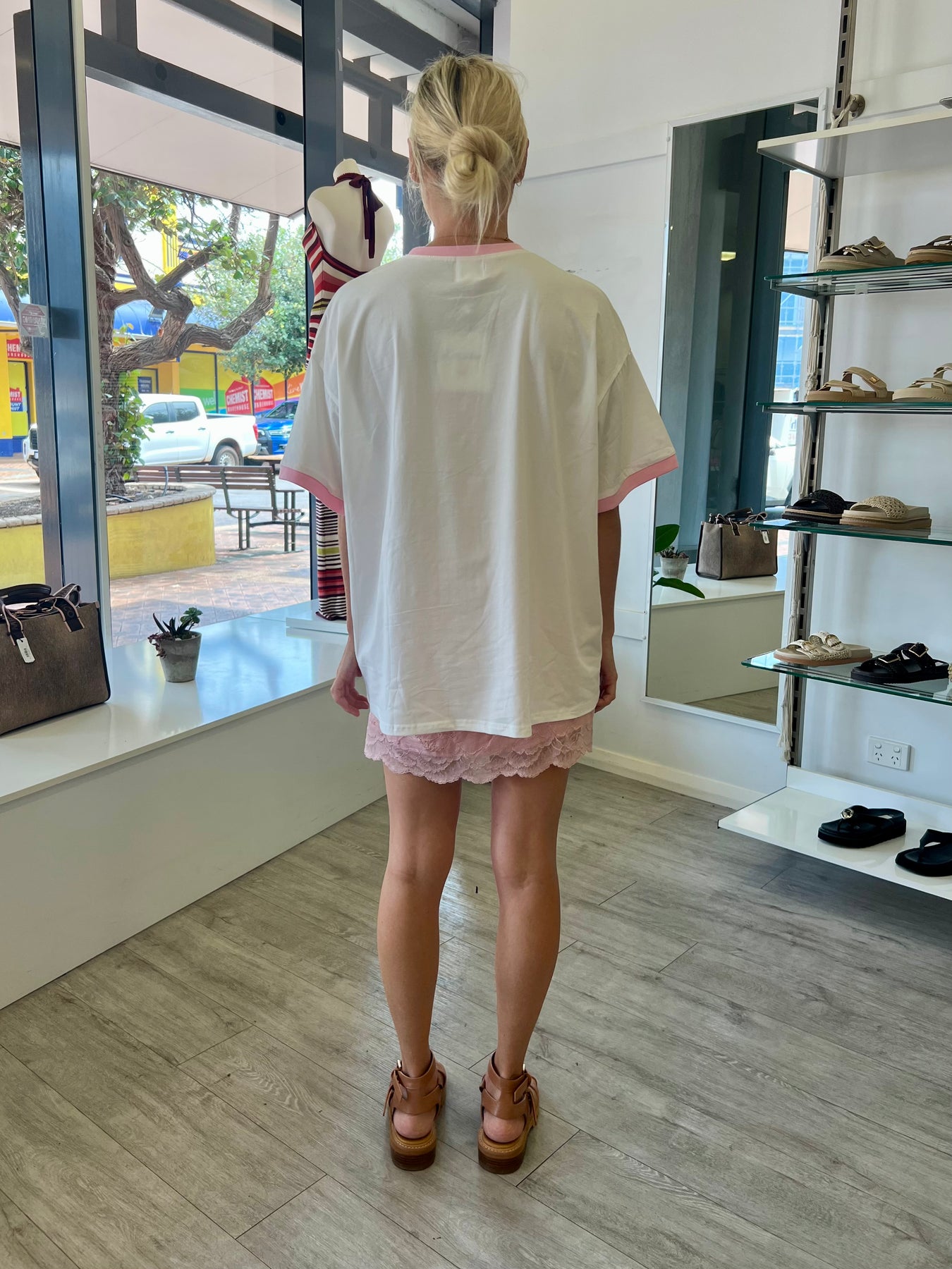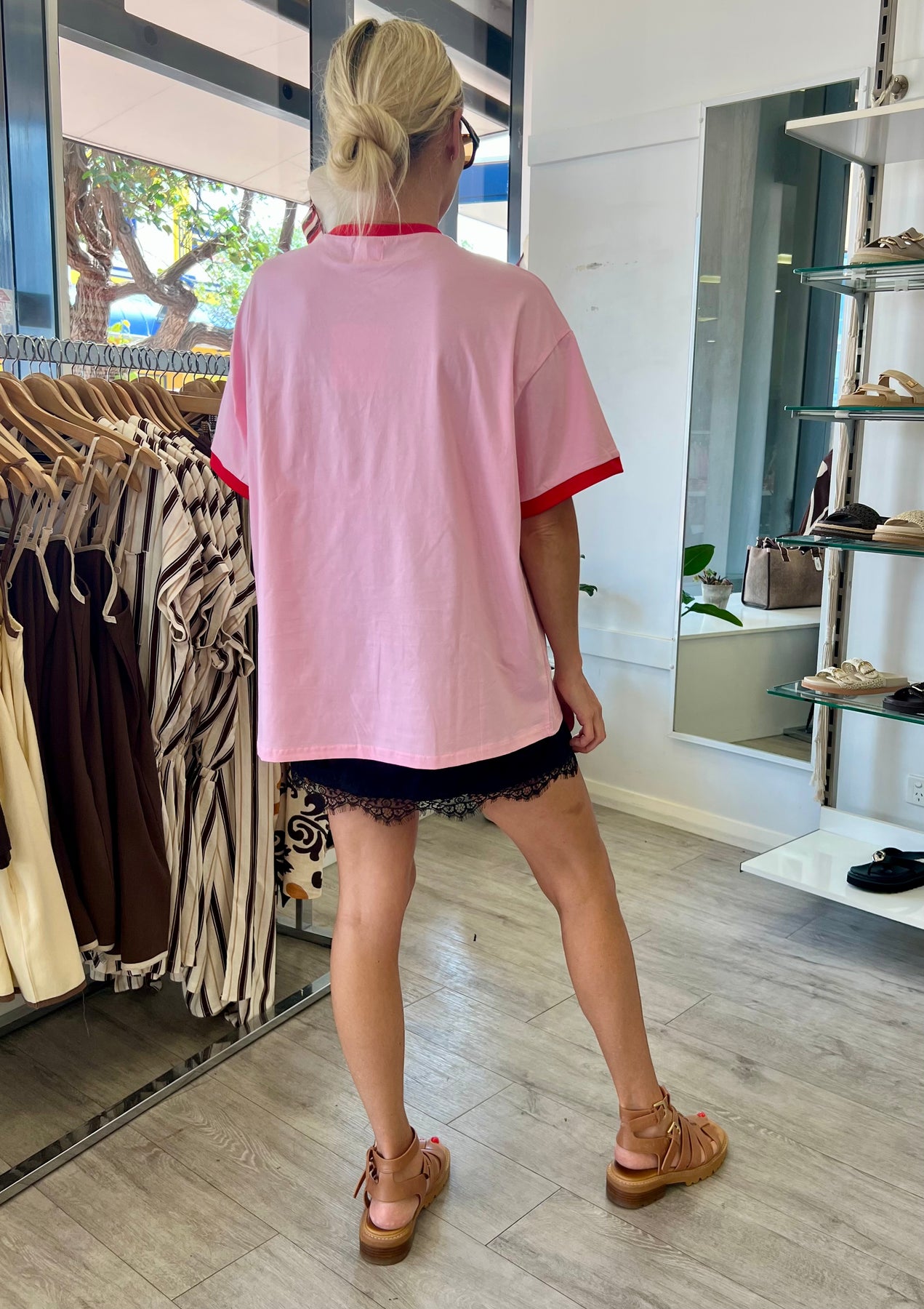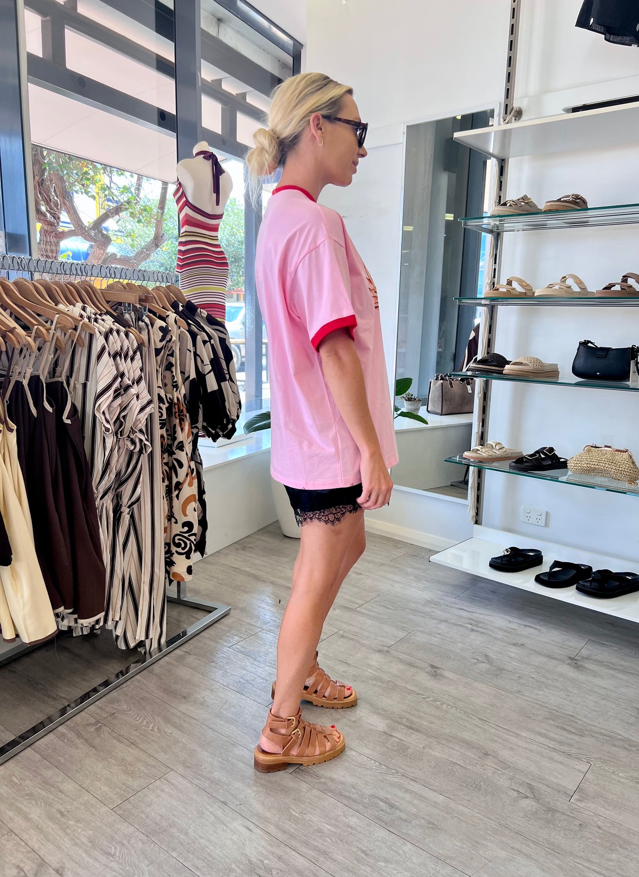 Regular price $59.95An effortless essential, the Trinket Oversized Tee in Rose delivers a nostalgic, laid-back style with a touch of vintage charm. Crafted from cotton jersey, it offers a soft hand-feel for everyday comfort. Designed in an oversized fit, this style features dropped shoulders and wide sleeves for relaxed wear. The All About Eve exclusive graphic adds a subtle statement element, bringing individuality to casual outfitting.