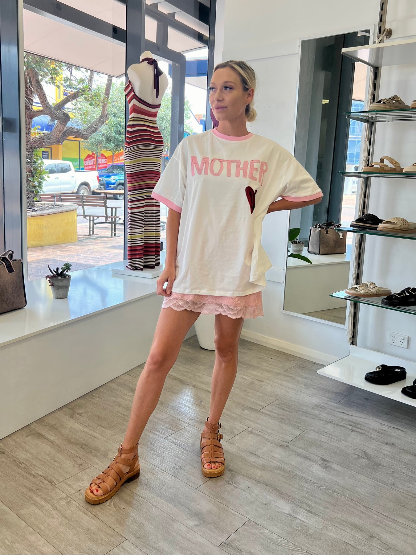 Regular price $85.00The Mother T-Shirt from By Frankie delivers effortless sophistication with its relaxed boxy silhouette and crew neckline. Cut for a generous oversized fit, this short-sleeve essential offers contemporary comfort without compromising on style. Perfect for layering or wearing solo, it's a versatile wardrobe staple that transitions seamlessly from casual to refined occasions.