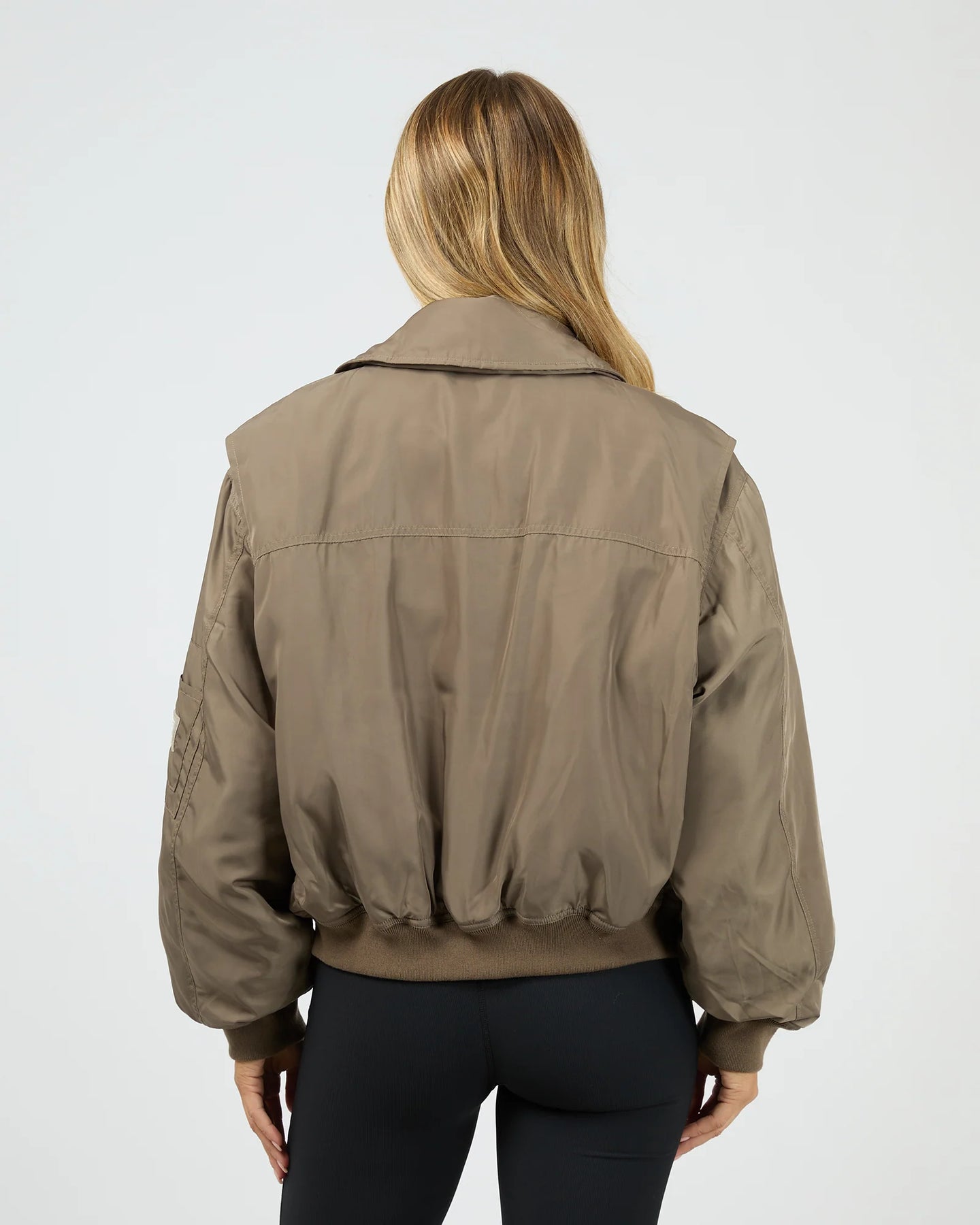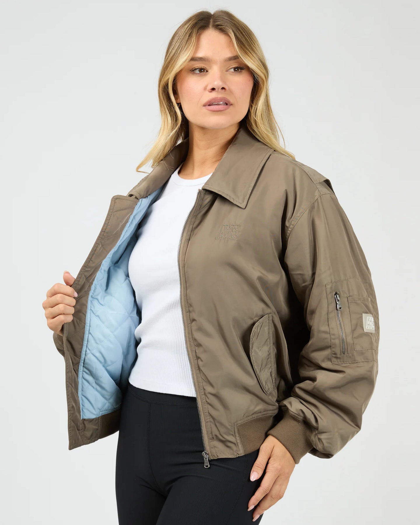 Regular price $139.95The Active Luxe Bomber in Mocha is the perfect layering piece for elevated off-duty and active styling. Designed in a relaxed fit, it offers an easy, comfortable silhouette that’s ideal for throwing on before or after workouts, or styling casually day to day. Crafted from a lightweight polyester, it features a clean zip-front closure and functional pockets for everyday practicality. The soft mocha tone adds a refined touch, pairing effortlessly with active leggings, denim, or matching athleisure pieces for a modern, polished look.