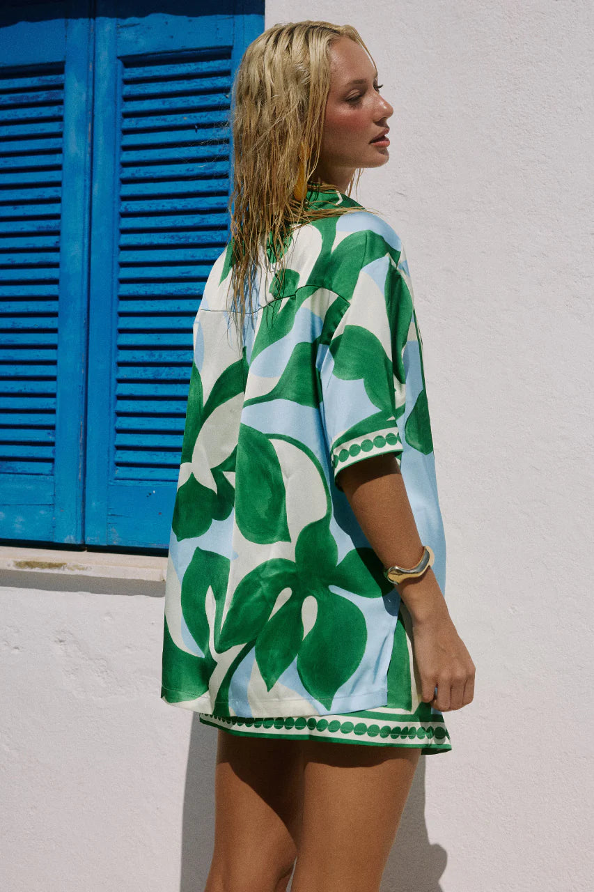 Regular price $79.00With a relaxed fit and abstract print, our Alara Short Sleeve Shirt is effortless and breezy, pair with our Alara Mini Skirt for the complete look.