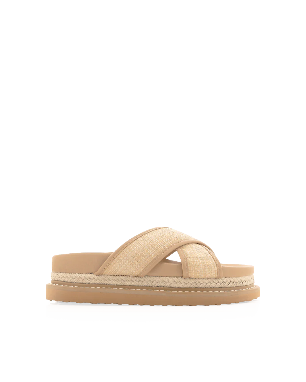 The raffia-inspired upper pattern adds artisanal flair and warm, organic charm, seamlessly blending casual and refined style.