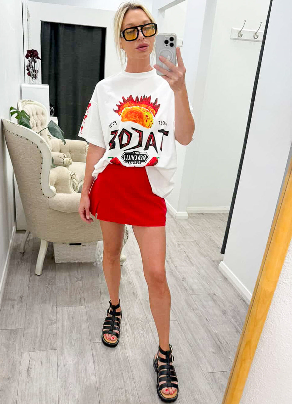 Regular price $75.00Embrace the carefree spirit of BY FRANKIE with this playful taco-themed tee in White. Whether you're heading to a festival, packing for a getaway, meeting friends for brunch, or simply enjoying spontaneous adventures, this effortless piece brings fun and personality to your wardrobe.