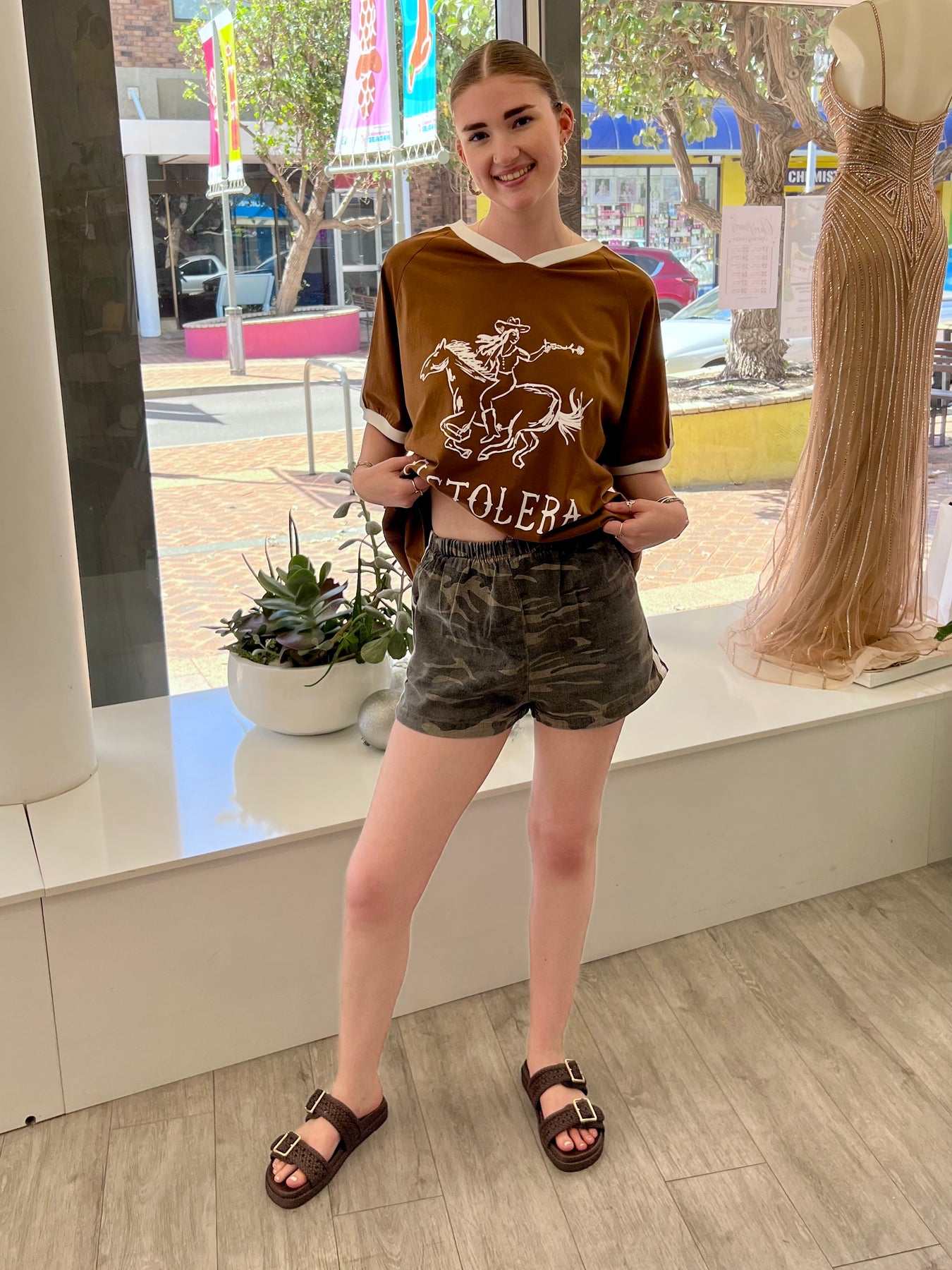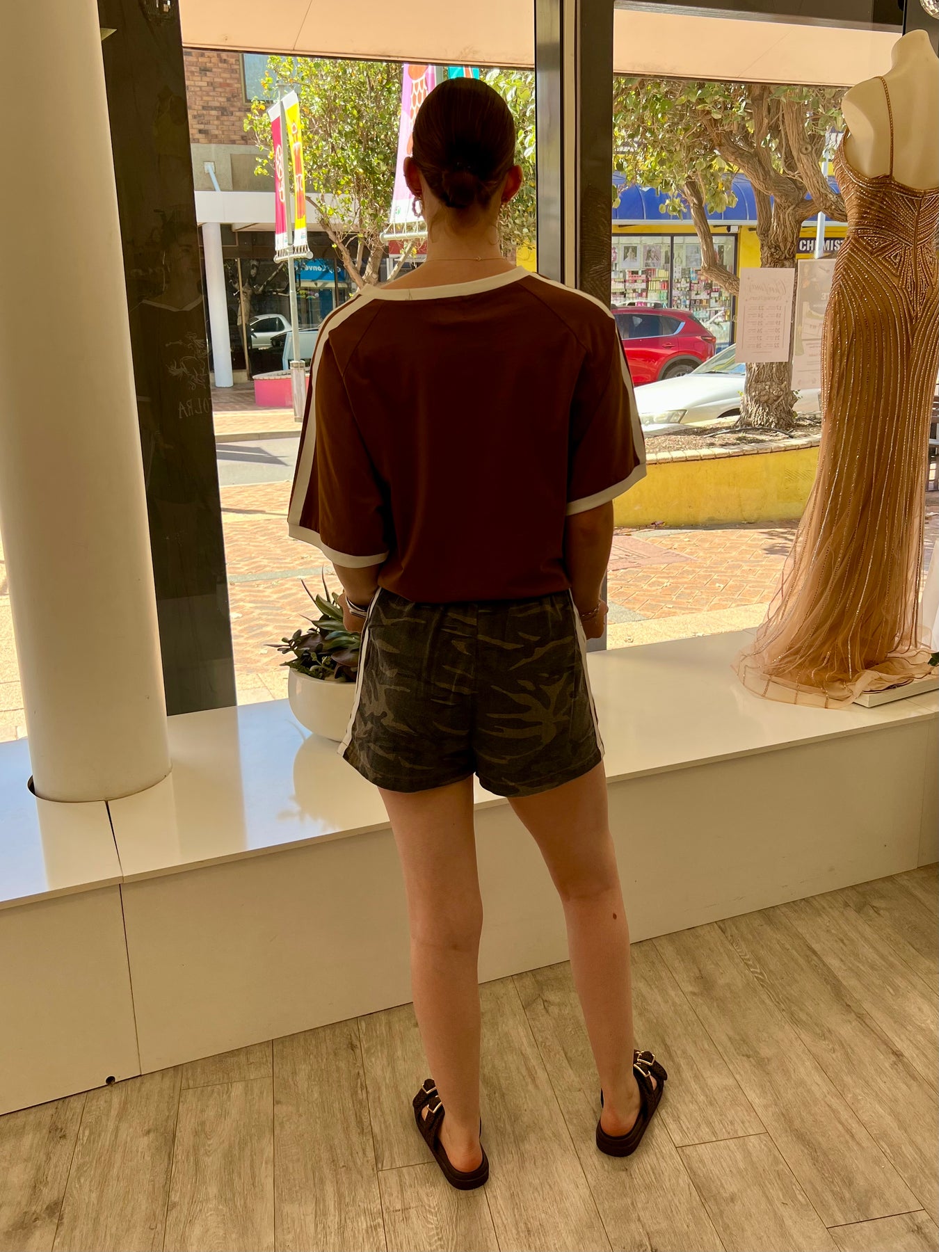 Classic camo army print with a cheeky twist of colour. Pair with an oversized tee or knit and sneakers for the perfect relaxed, style statement this spring.