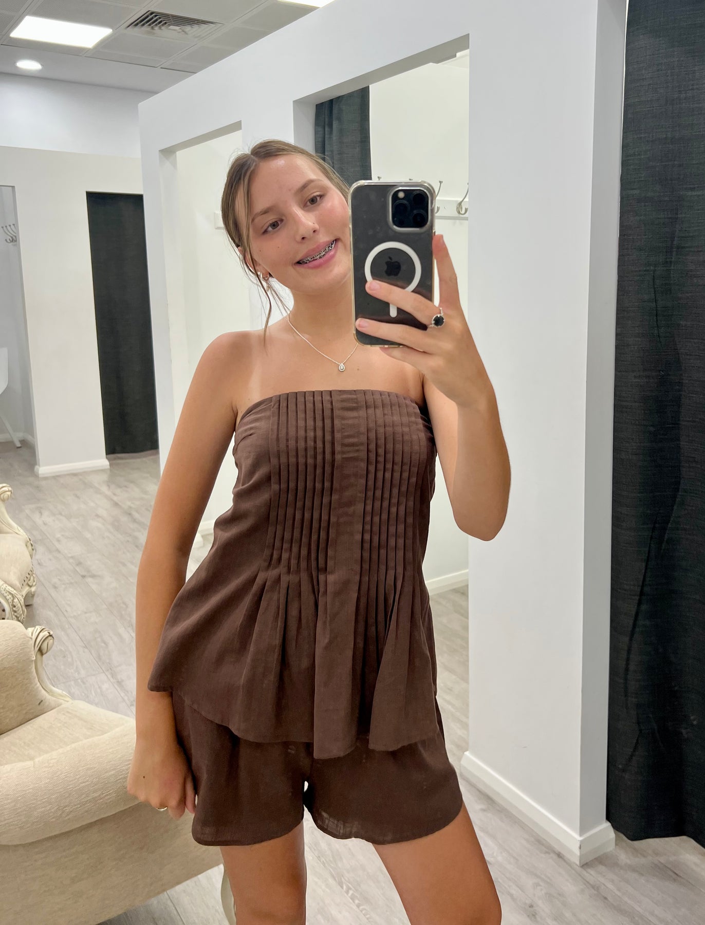 Chocolate Shirred Pant Set