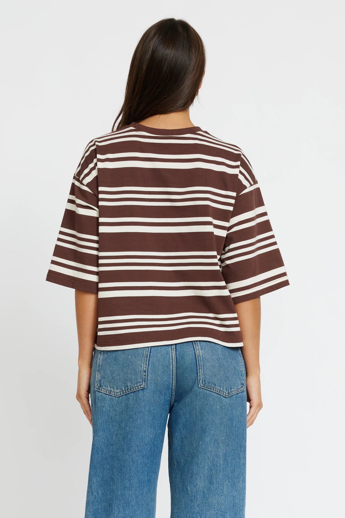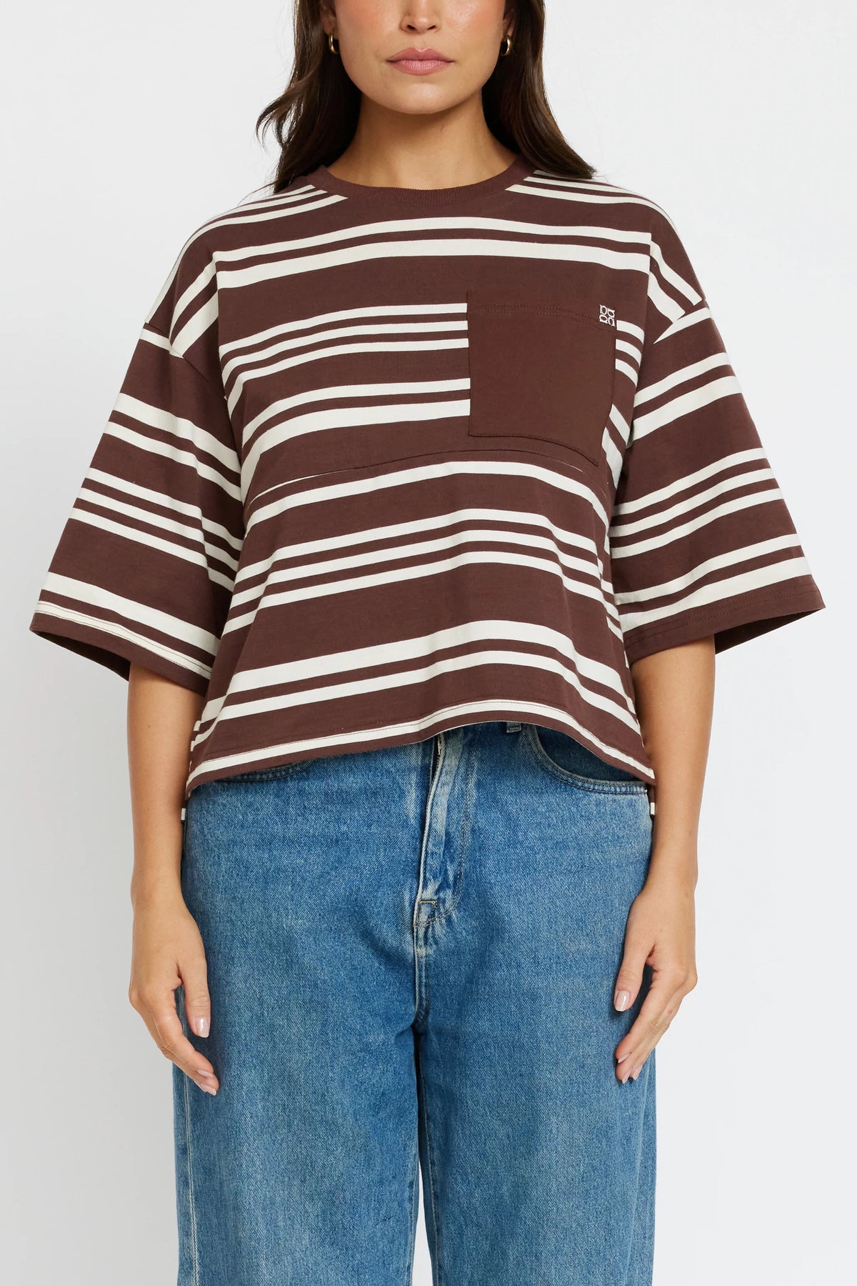 Crafted from heavyweight cotton blend jersey, the Brooklyn Tee offers a premium feel, while its eye-catching cinnamon and cream stripe design and front patch pocket add a modern, stylish touch.